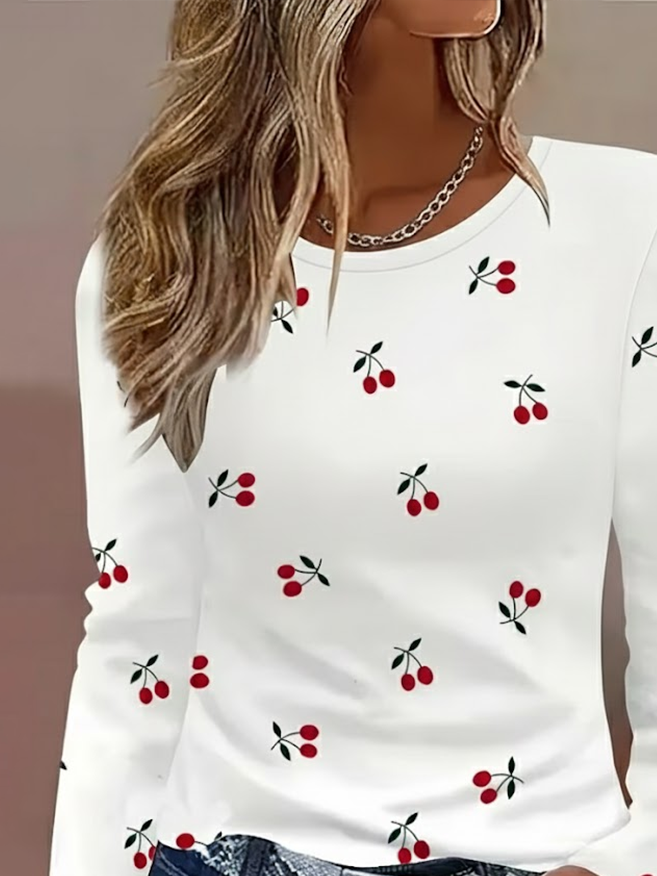 Women's Long Sleeve T-shirt Spring/Fall White Fruit Printing Jersey Crew Neck Daily Going Out Casual Top