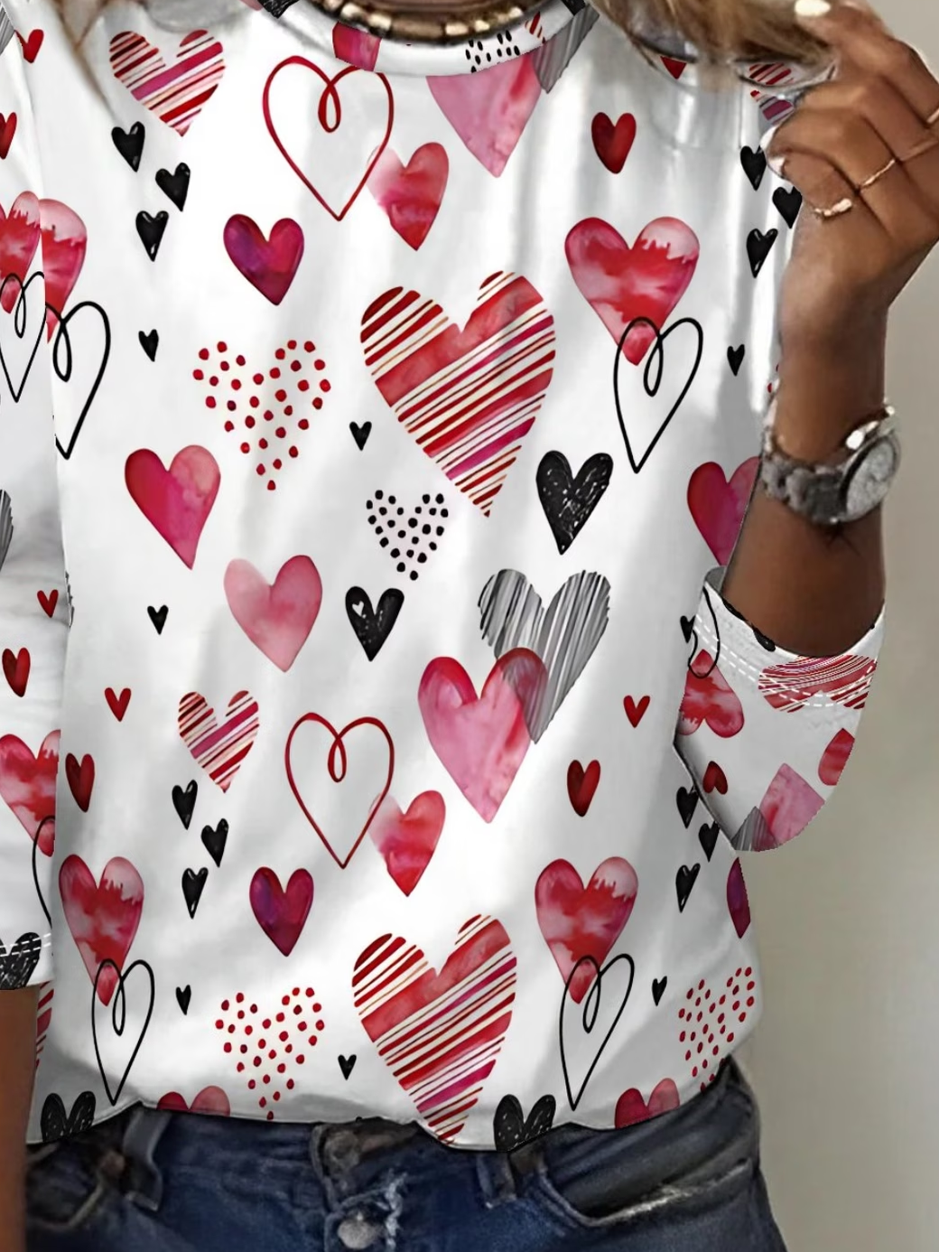 Women's Long Sleeve T-shirt Spring/Fall White Heart/Cordate Printing Jersey Crew Neck Daily Going Out Casual Top