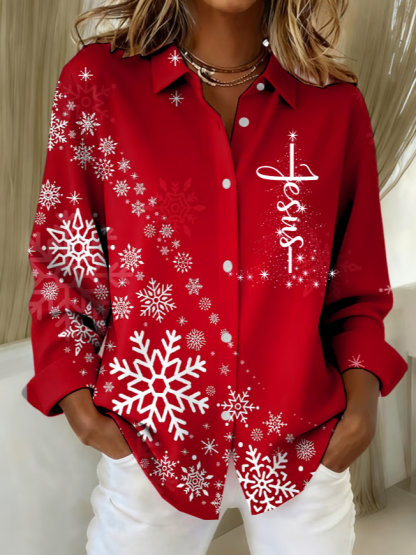 Women's Retro Christmas Faith Print Shirt