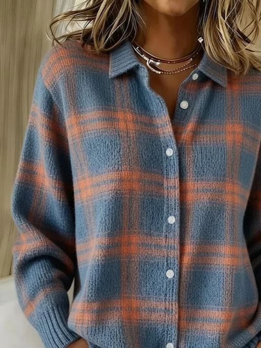Women's Retro Plaid Casual Collared Button-Up Cardigan