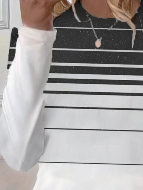 Women's Striped Print Casual Round Neck Long Sleeve T-Shirt