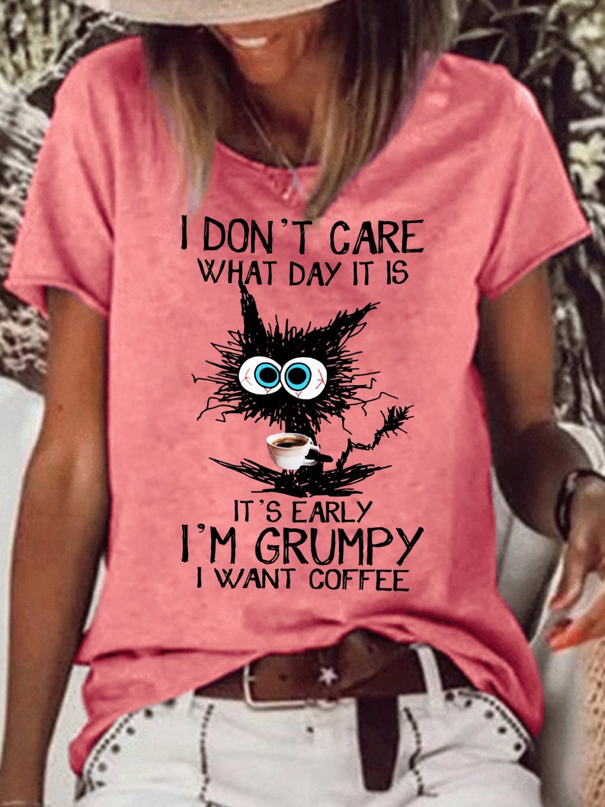 Womens Funny Coffee Letters Crew Neck T-Shirt