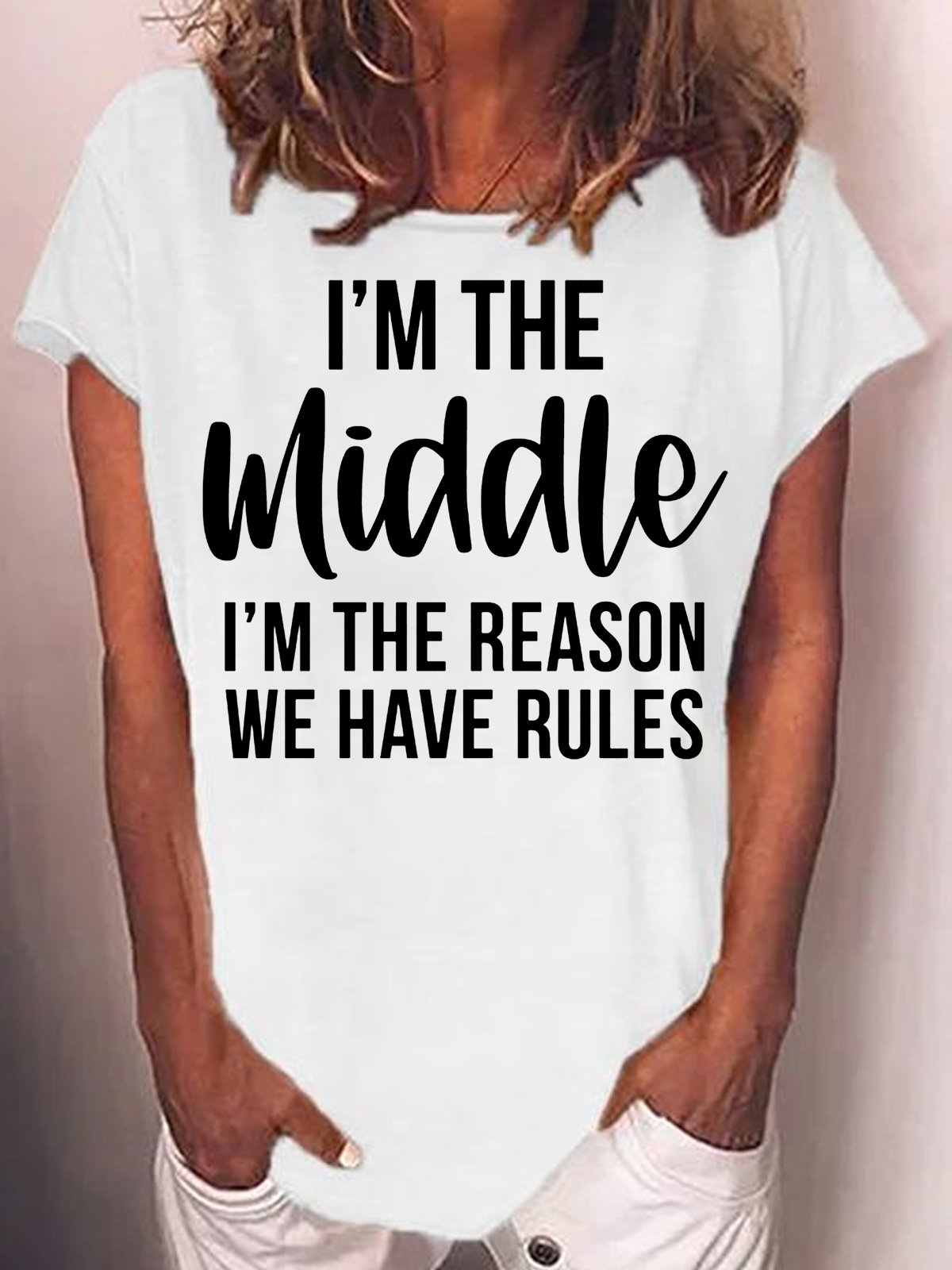 Womens Funny Middle Sister Crew Neck Casual T-Shirt
