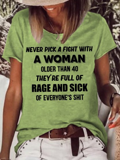 Womens Funny Never Pick A Fight With A Woman T-Shirt
