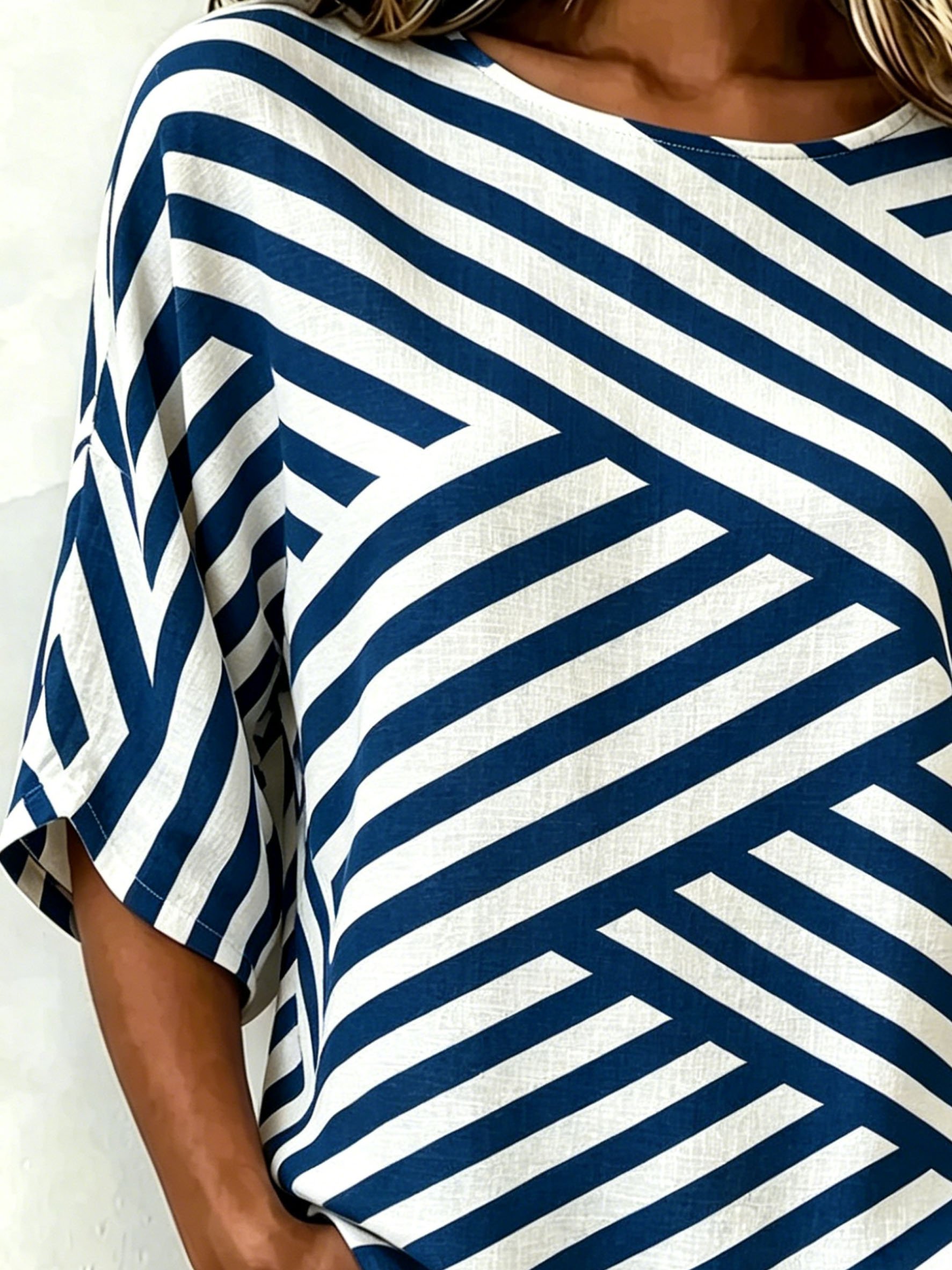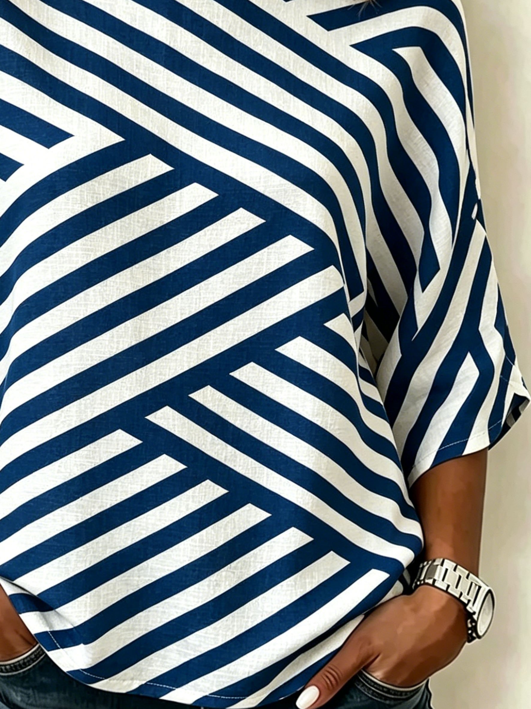 Abstract Striped Stand Collar Botton Spring Summer Linen Blend Casual Shirt