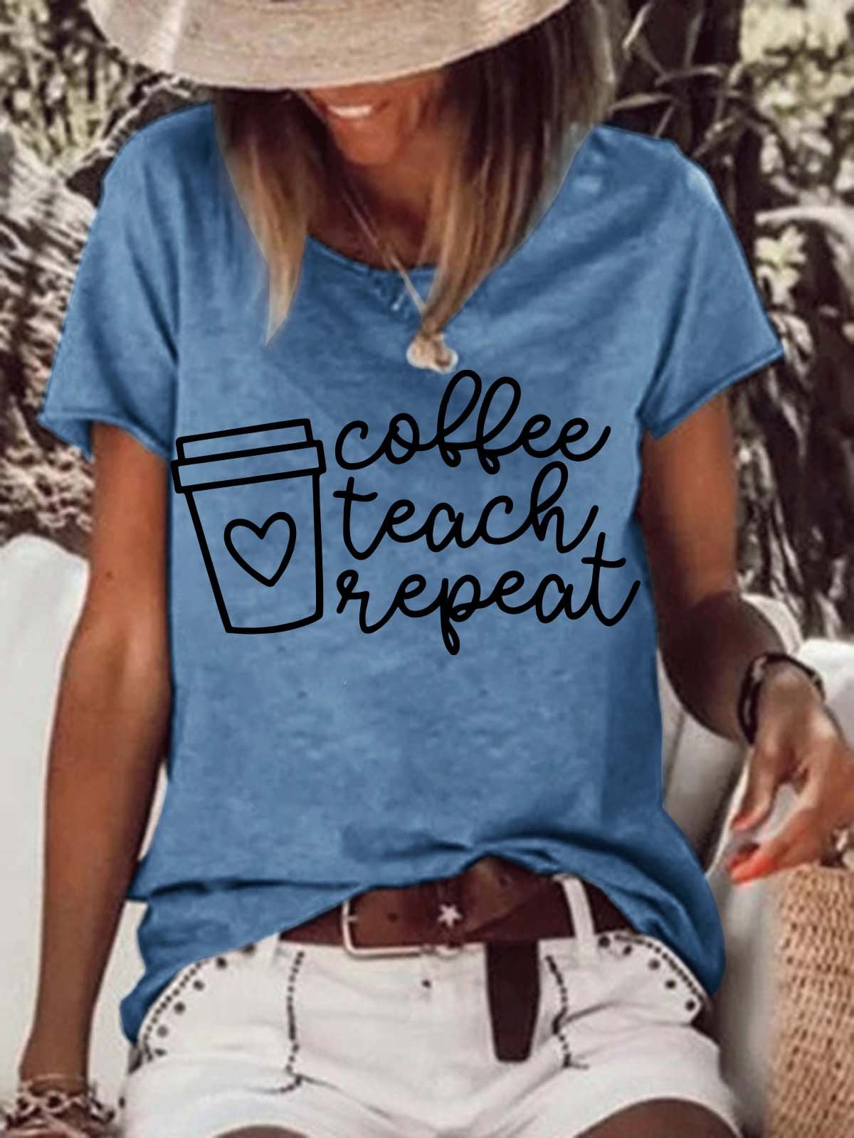 Coffee Teach Repeat Cotton Blends Crew Neck T-shirt