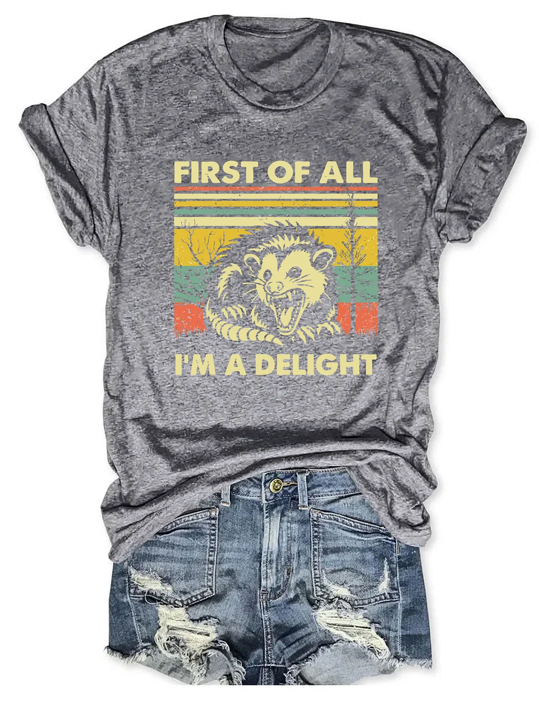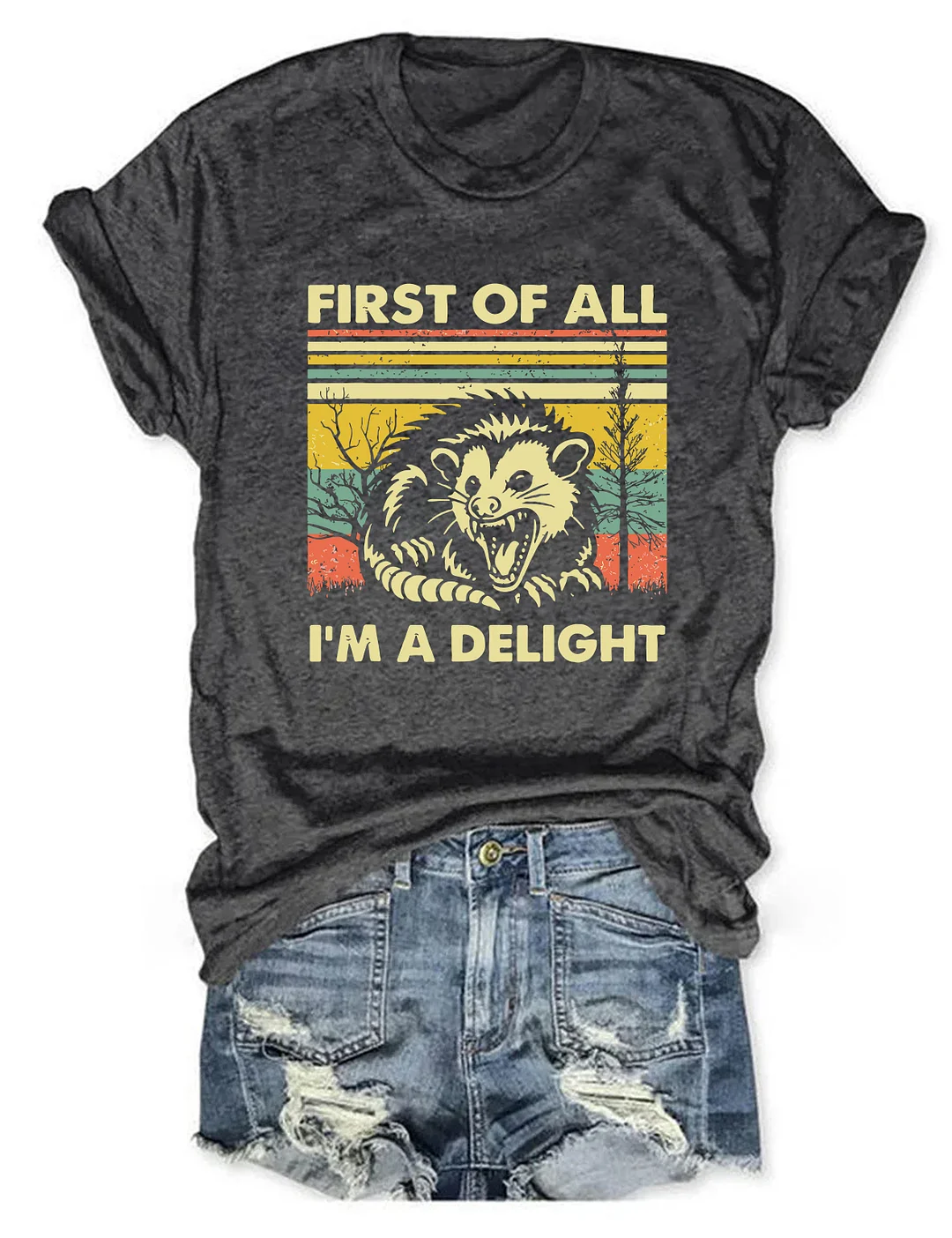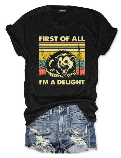 First Of All I'm A Delight Sarcastic Casual Loose Text Letters Crew Neck T-Shirt
