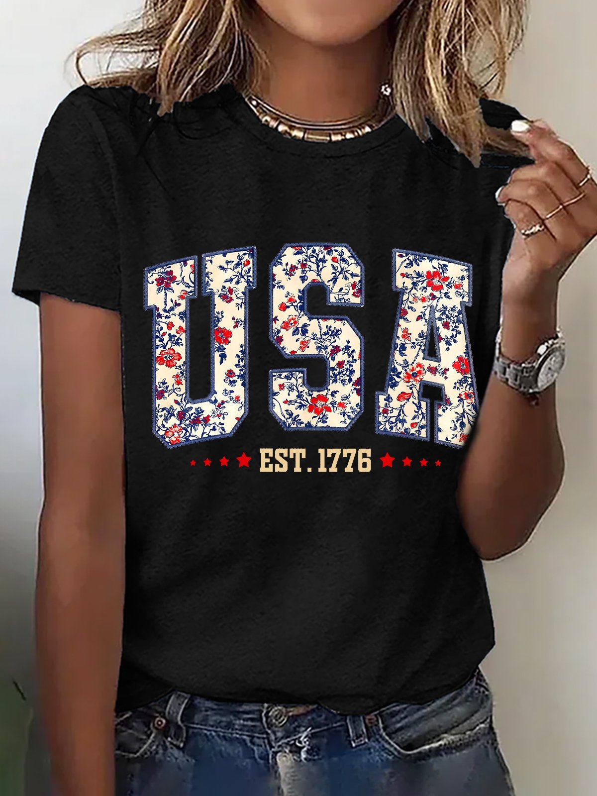 Floral USA Cotton T-shirt