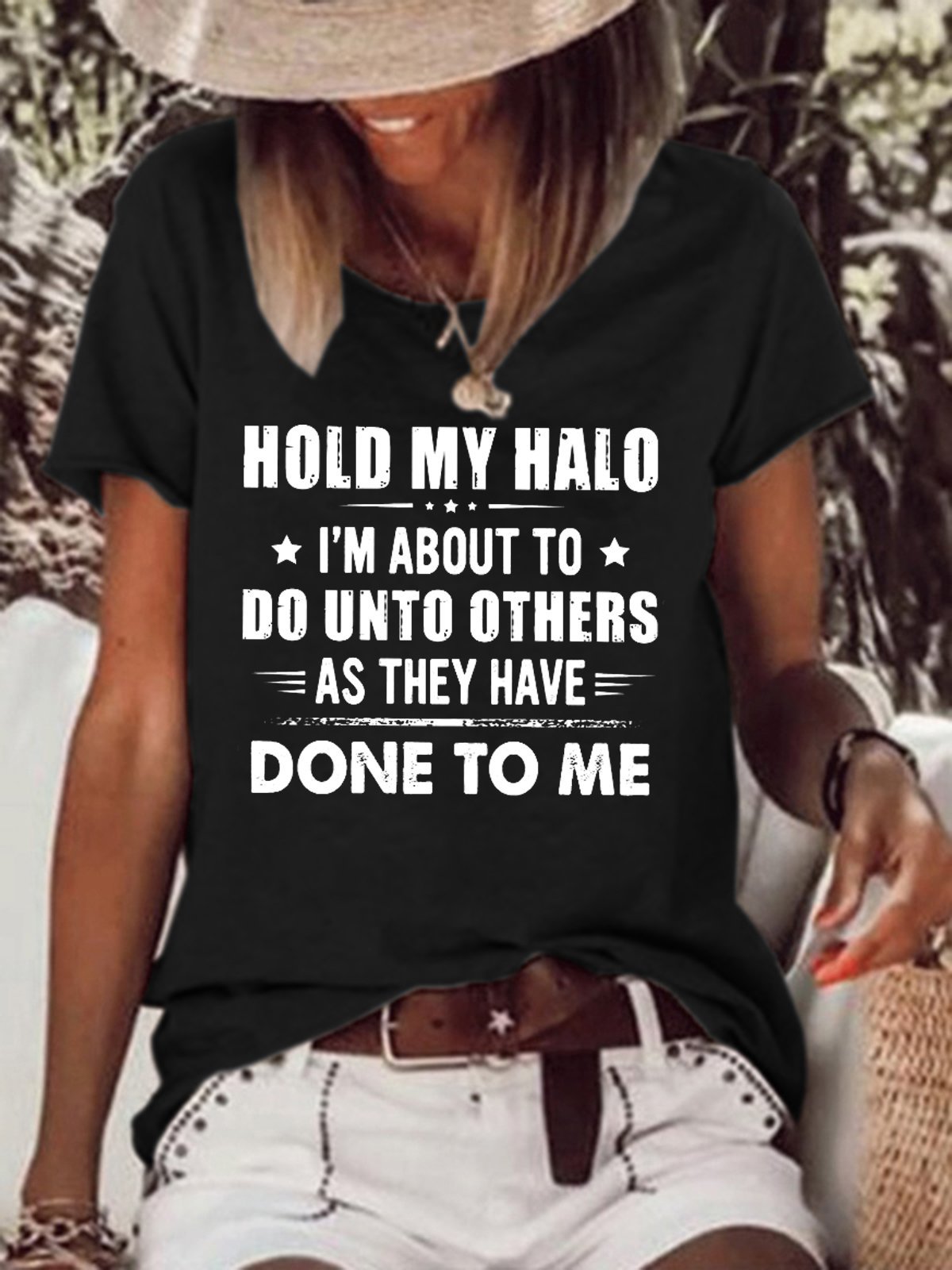 Hold my Halo I'm about to do unto others as they Women's Short Sleeve Tops