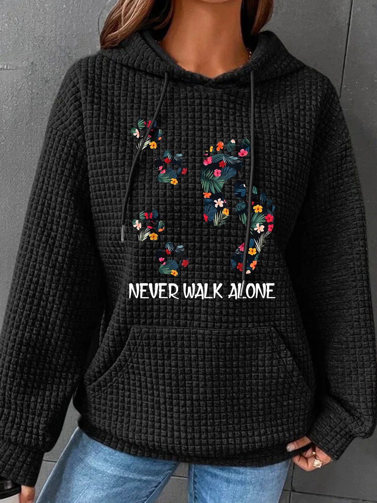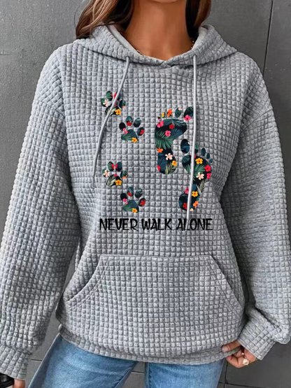 Never Walk Alone Paw Dog Flower Simple Loose Hoodie