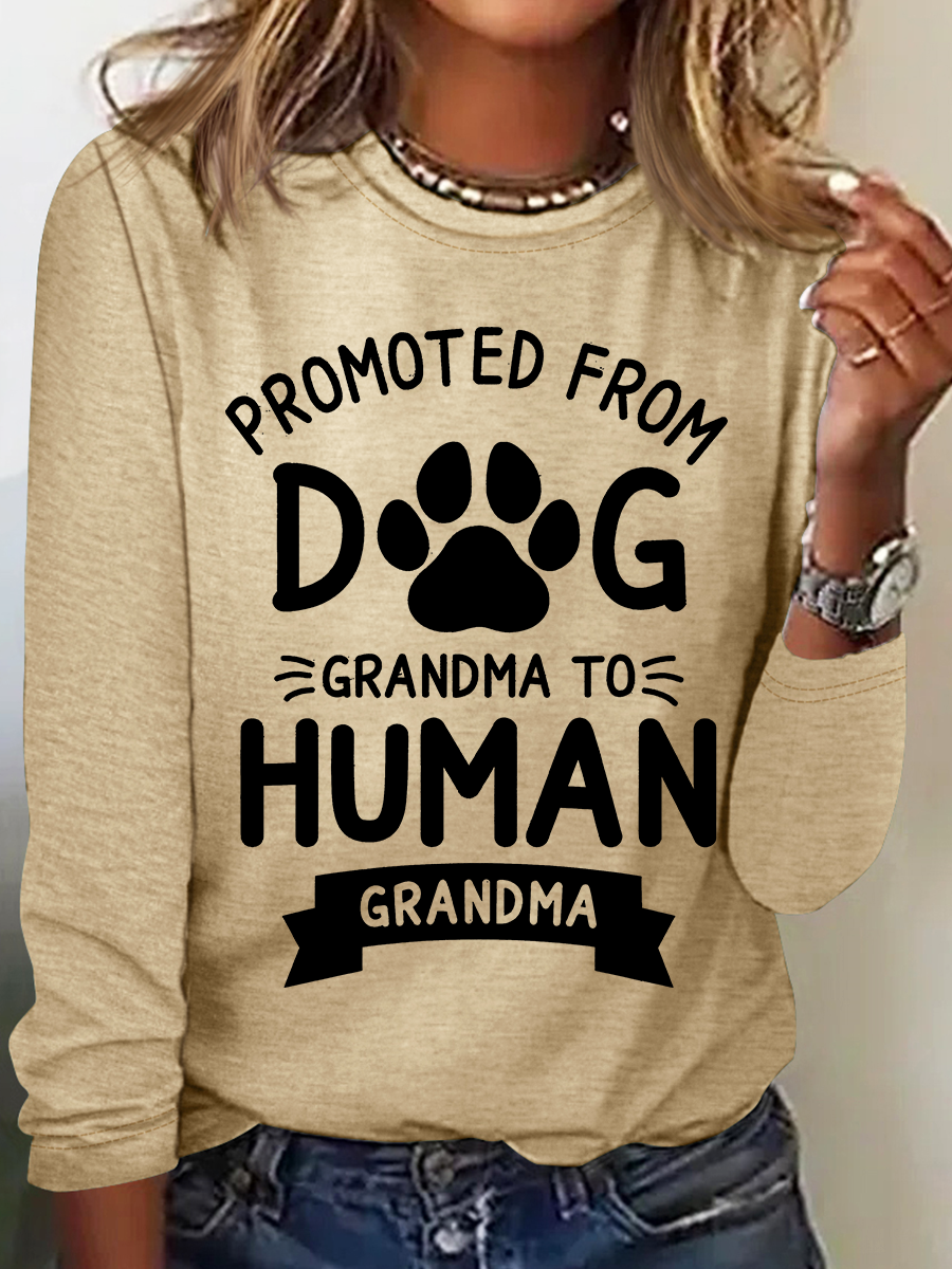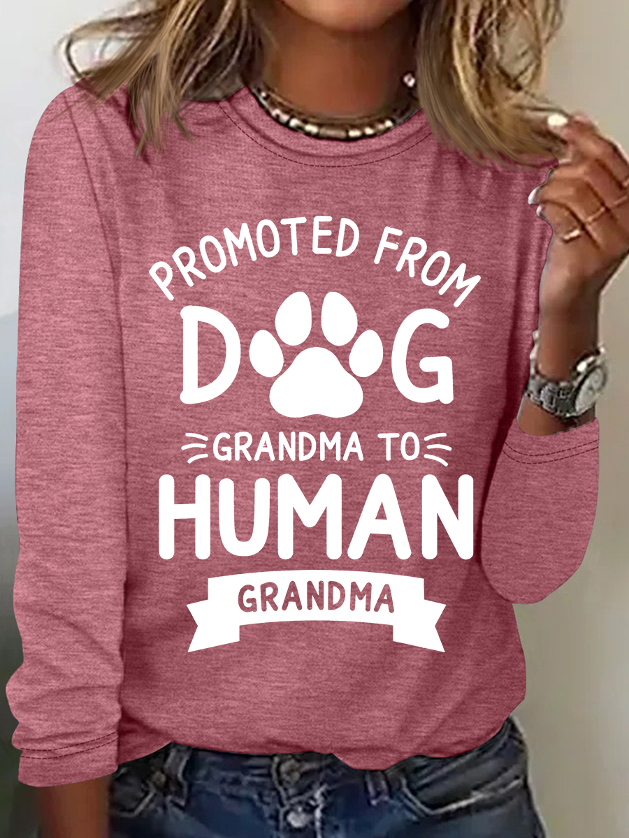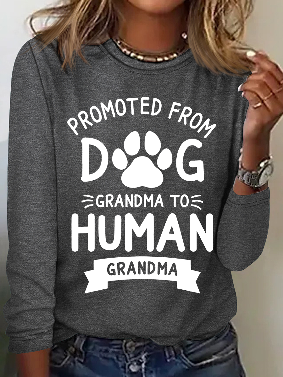 Promoted From Dog Grandma To Human Grandma Casual Long Sleeve Shirt