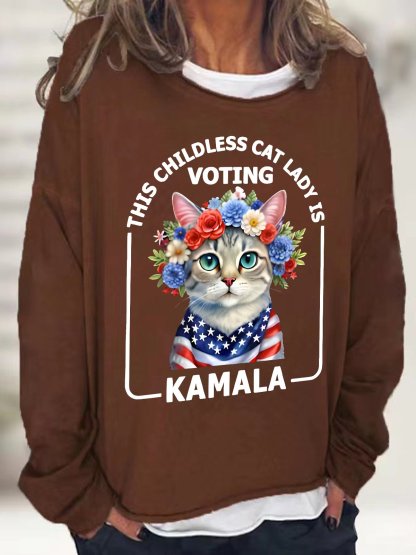 This Childless Cat Lady, Ladies is Voting Kamala Election 24 Casual Sweatshirt