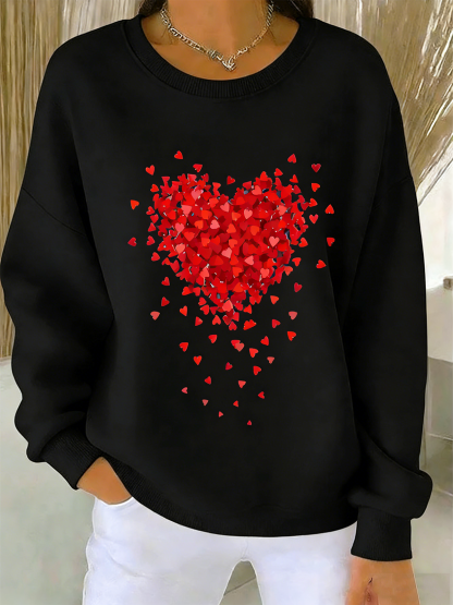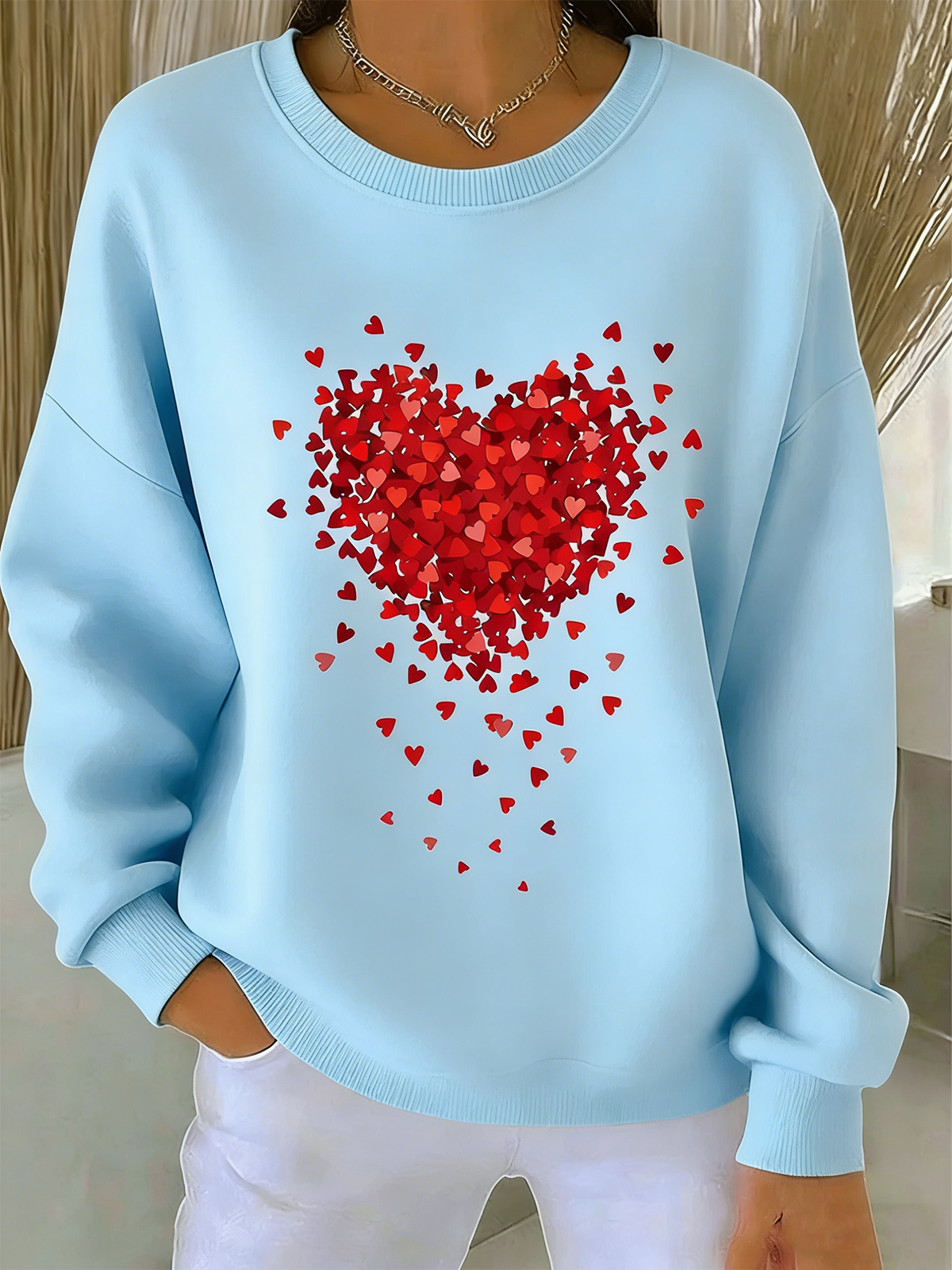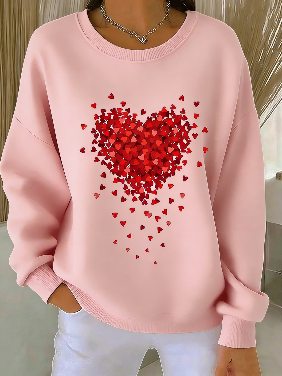 Valentine's Day Crew Neck Simple Cotton-Blend Sweatshirt