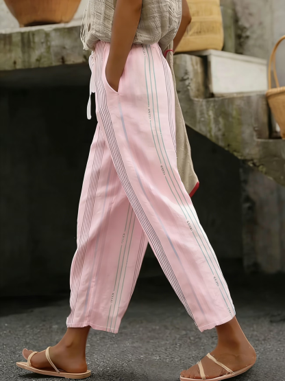 Women's H-Line Straight Pants Daily Going Out Pants Pink Casual Printing Striped Spring/Fall Pants