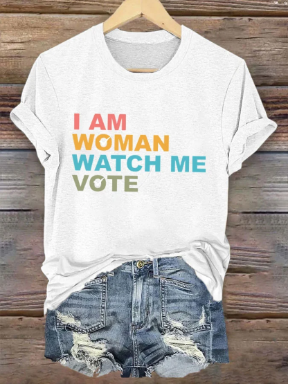Women's I Am Woman Watch Me Vote Print T-Shirt