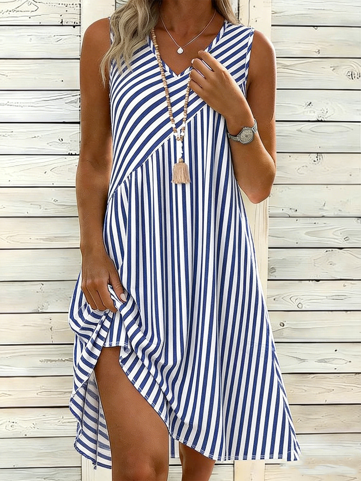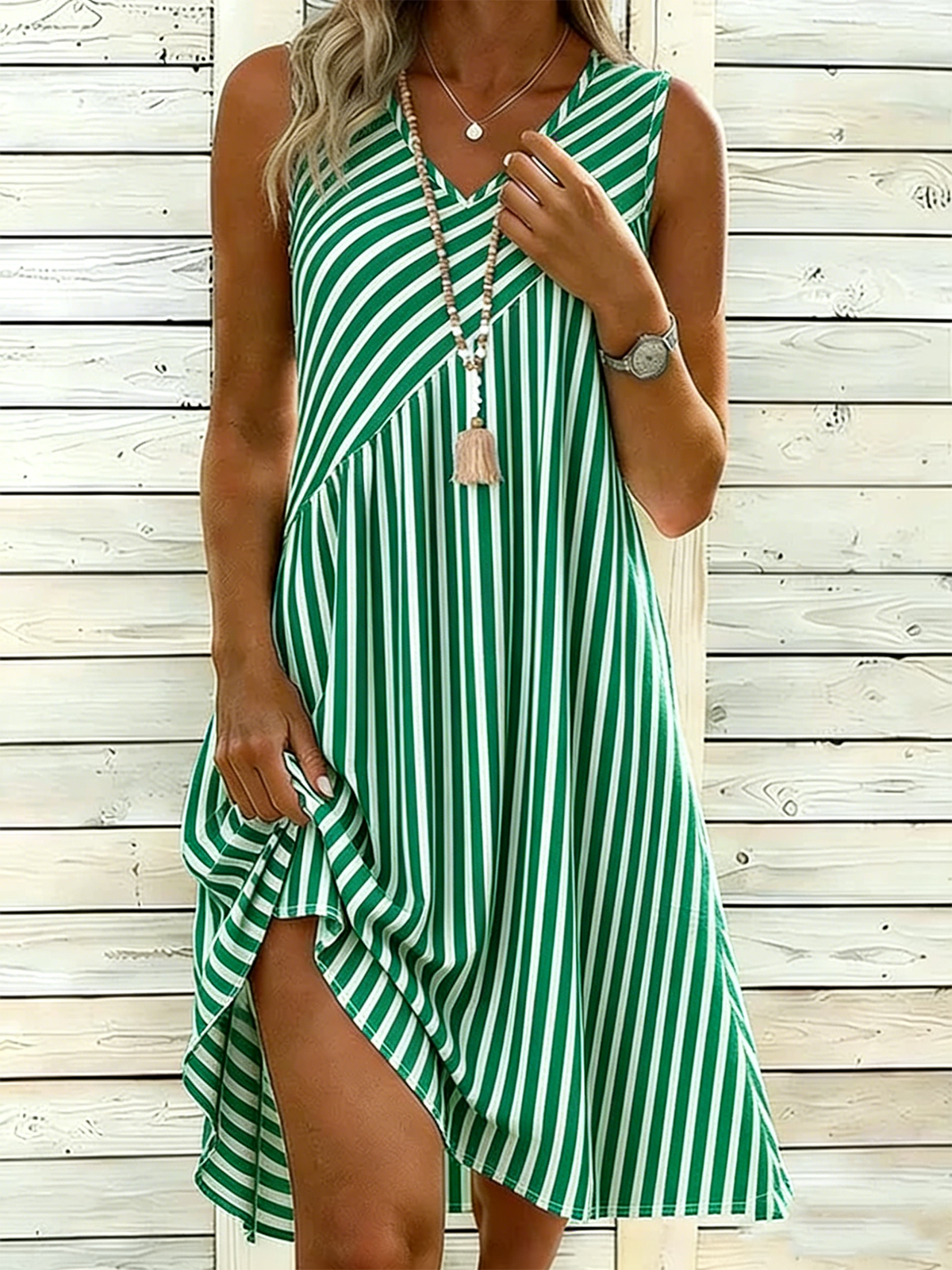 Geometric V Neck Sleeveless Pocket Beach Halter Top Dress