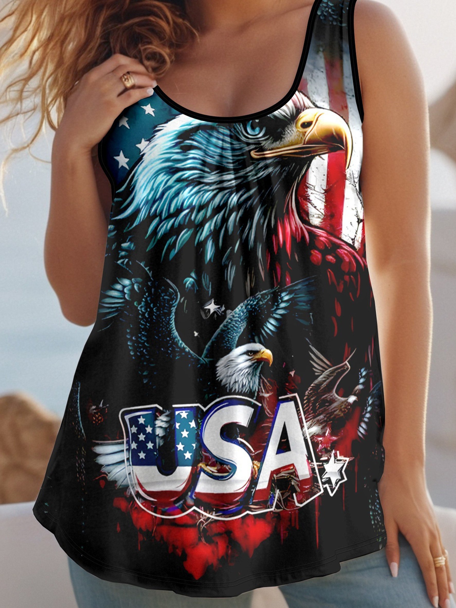 3D Pringting America Flag Eagle Old Glory Jersey Casual Tank Top