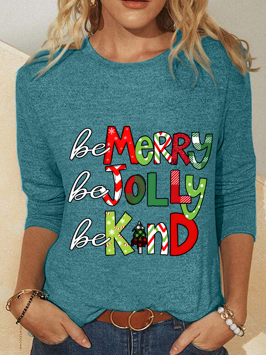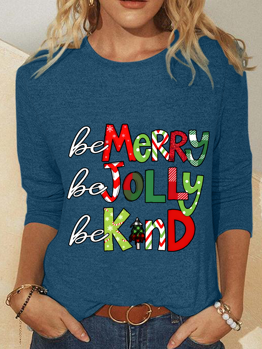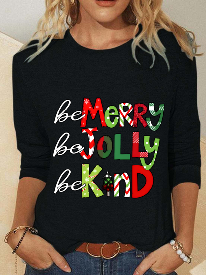Be Merry Be Jolly Be Kind Casual Long Sleeve Shirt