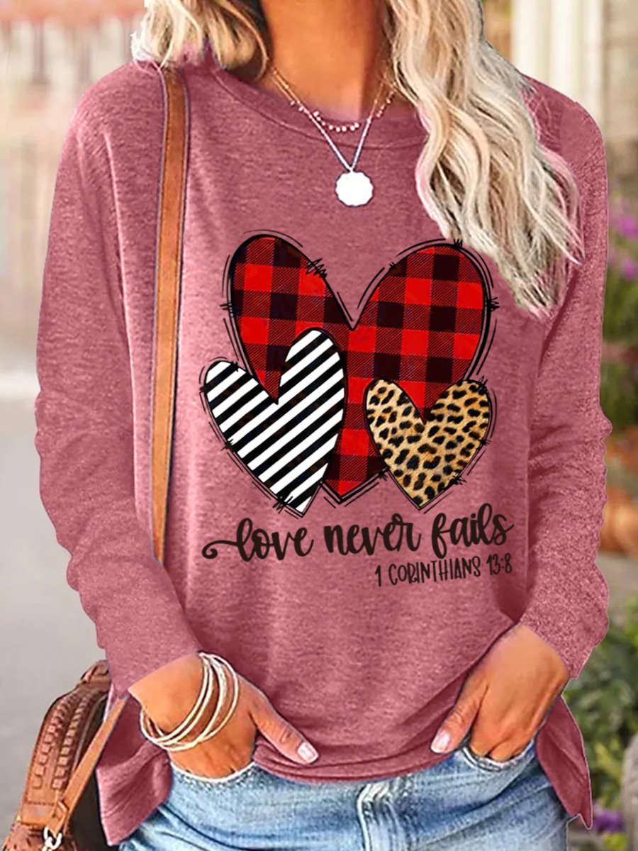 Love Never Fails 1 Corinthians13:18 Hearts Women's Long Sleeve T-Shirt