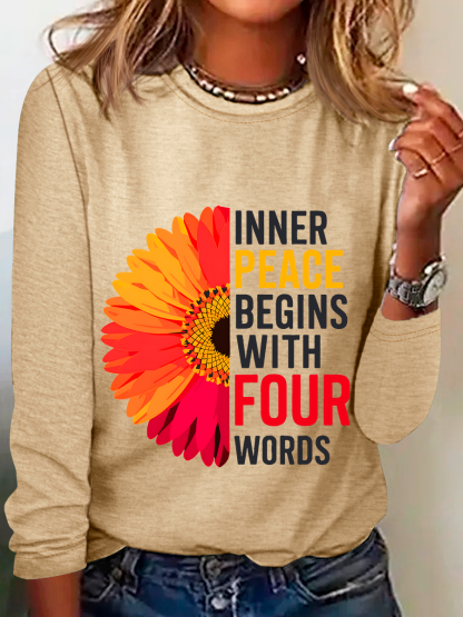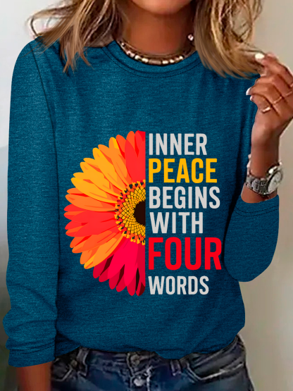 Inner Peace Begins With Four Words Casual Long Sleeve Shirt