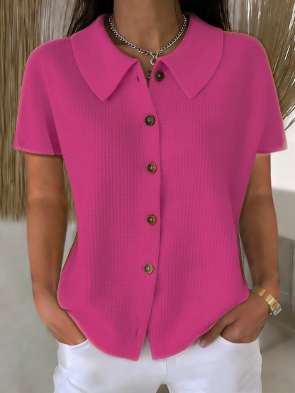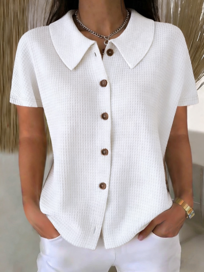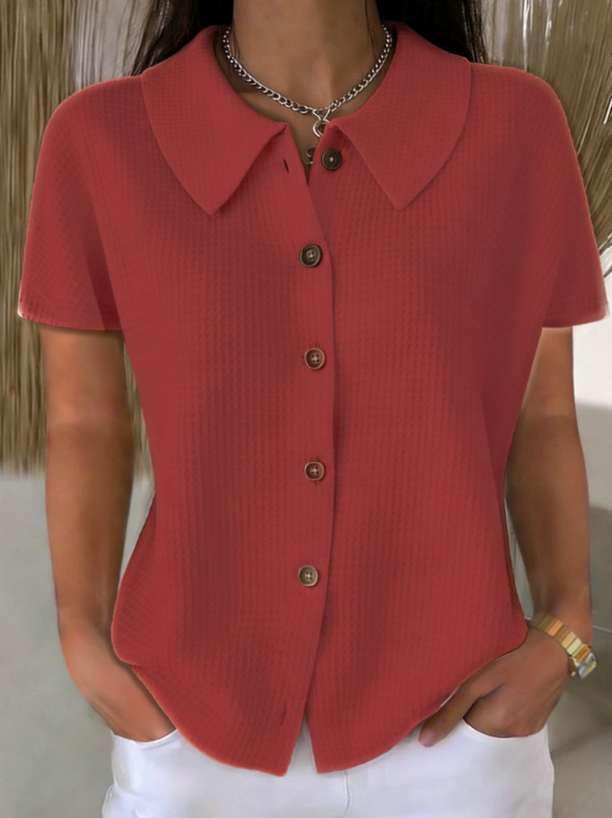 Waffle Casual Shawl Collar Short Sleeve Casual Shirt