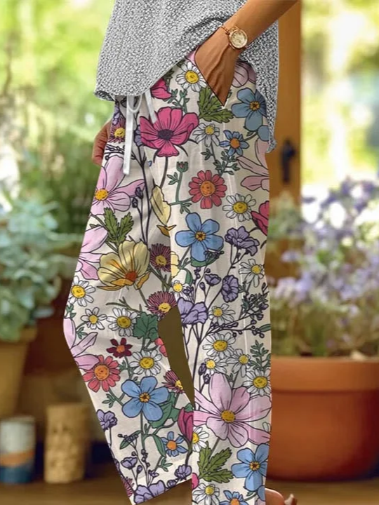 Women's H-Line Baggy Pants Daily Going Out Pants As Picture Casual Printing Floral Spring/Fall Pants