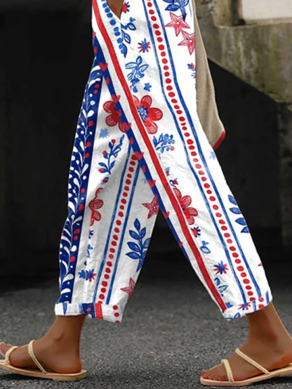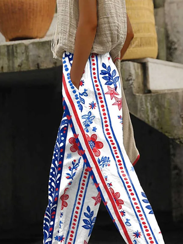 Women's H-Line Baggy Pants Daily Going Out Pants As Picture Casual Printing Independence Day (Flag) Spring/Fall Pants