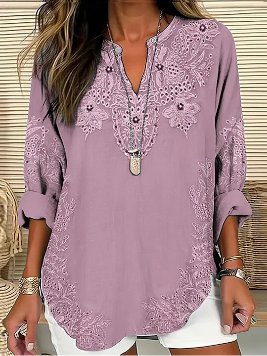 Women's Long Sleeve Blouse Spring/Fall Blue Floral Printing Cotton-Blend V Neck Daily Going Out Casual Top