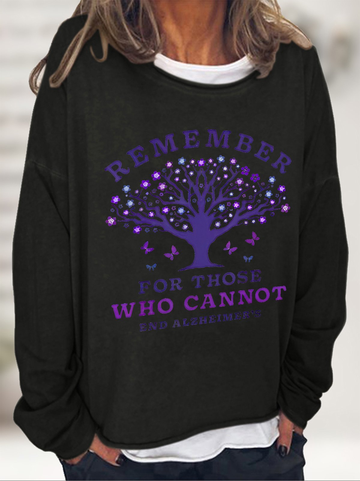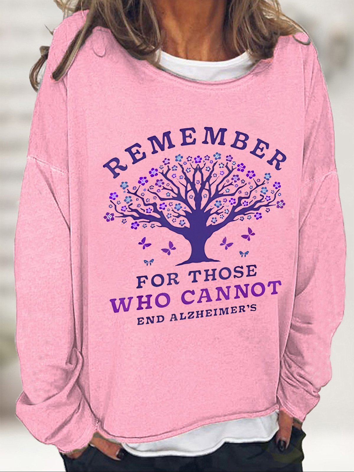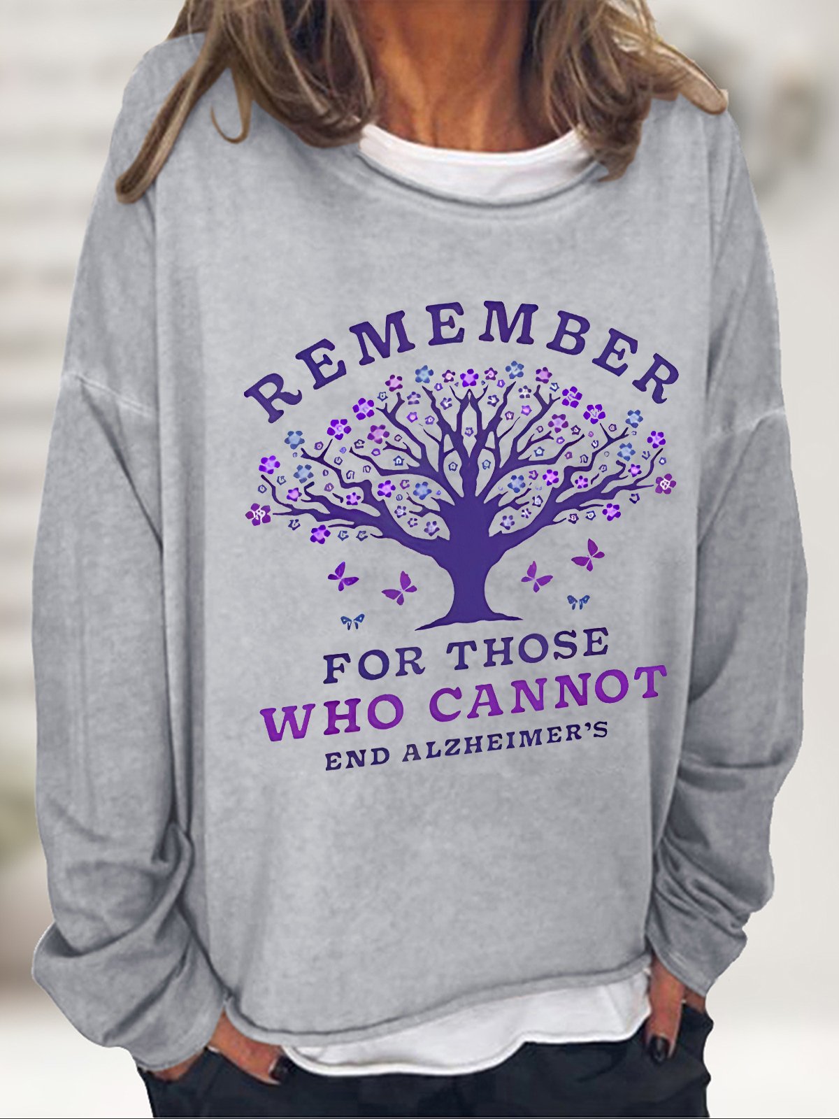 Women's Remember For Those Who Cannot Dementia Alzheimer's Disease Awareness Printed Casual Sweatshirt