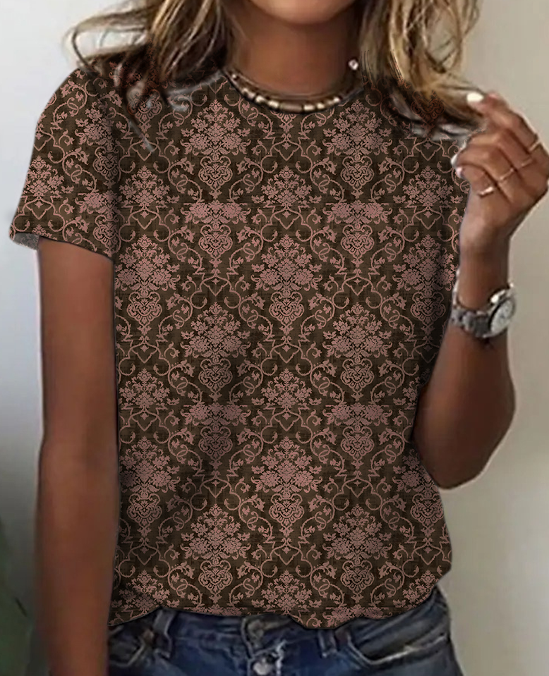 Women's Vintage Bohemian Floral Print Cotton T-Shirt
