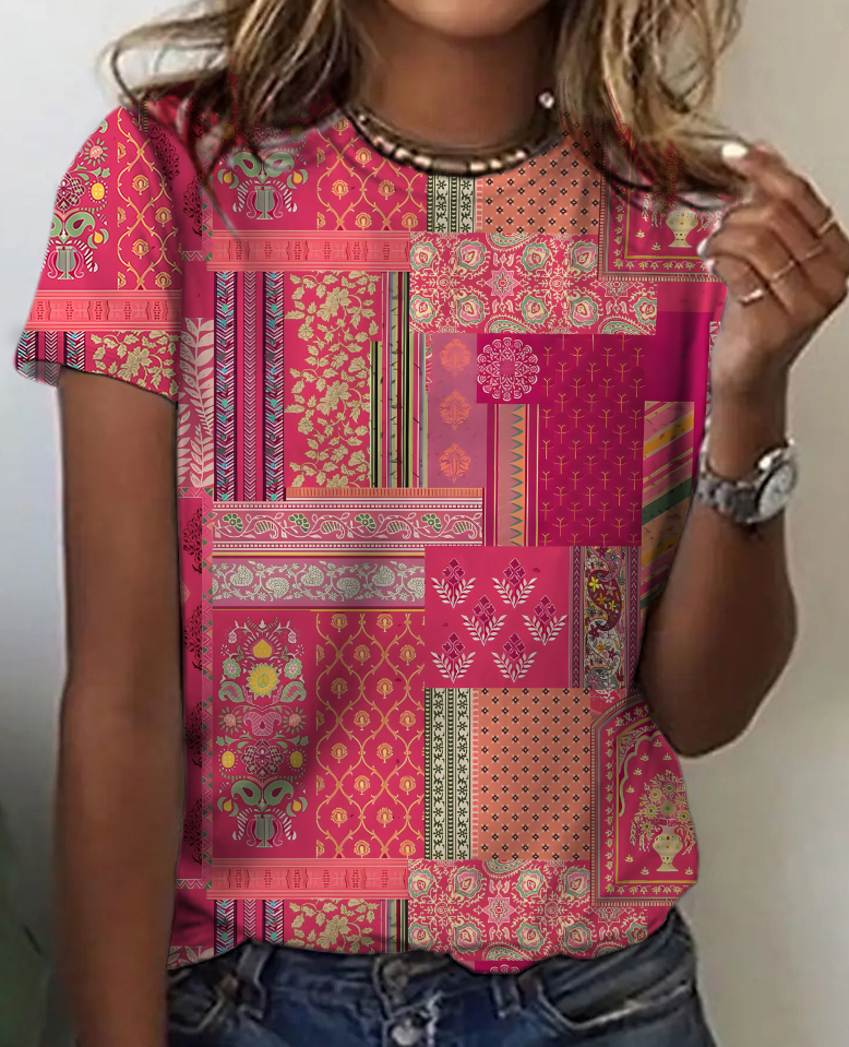 Women's Vintage Bohemian Floral Print Cotton T-Shirt