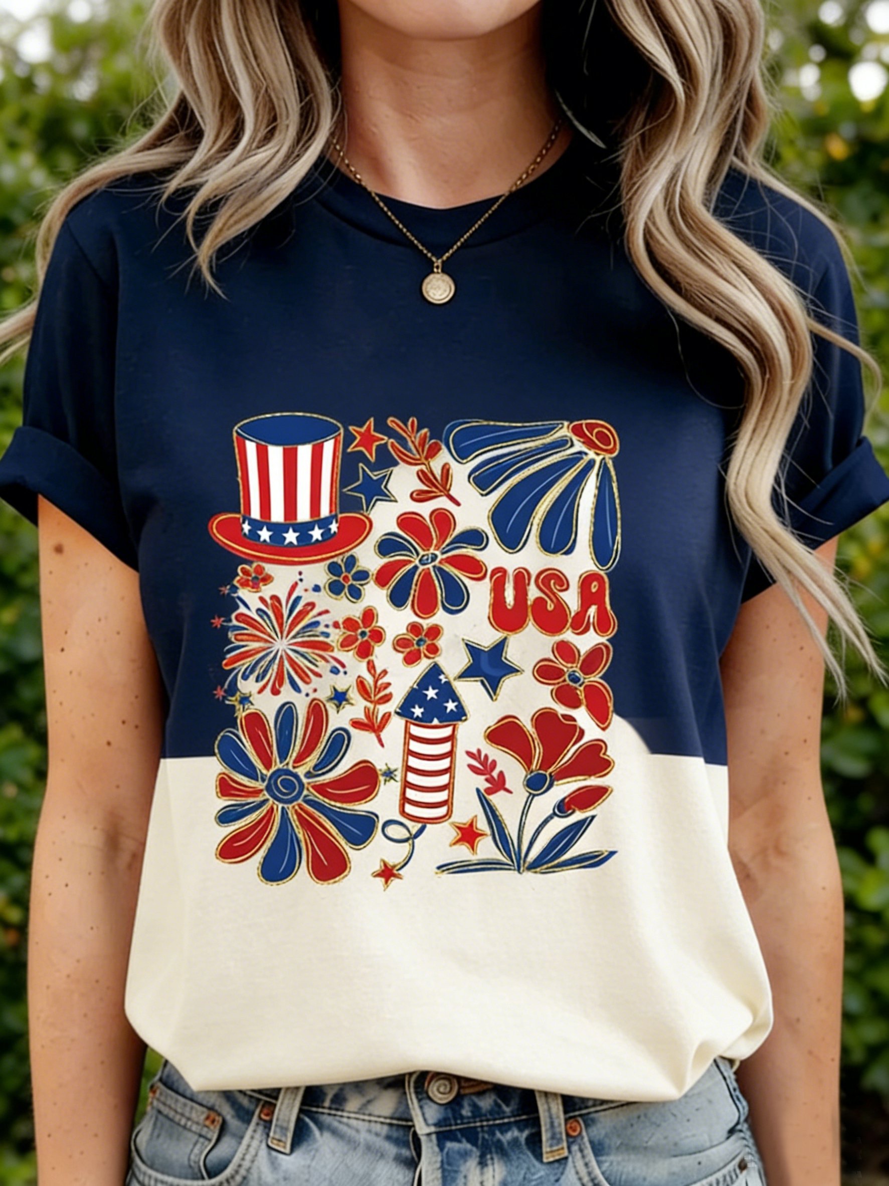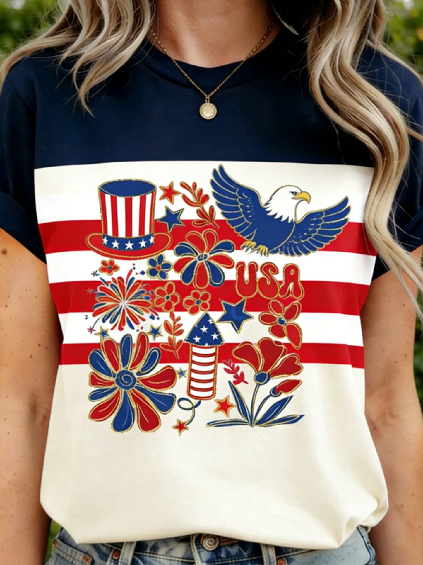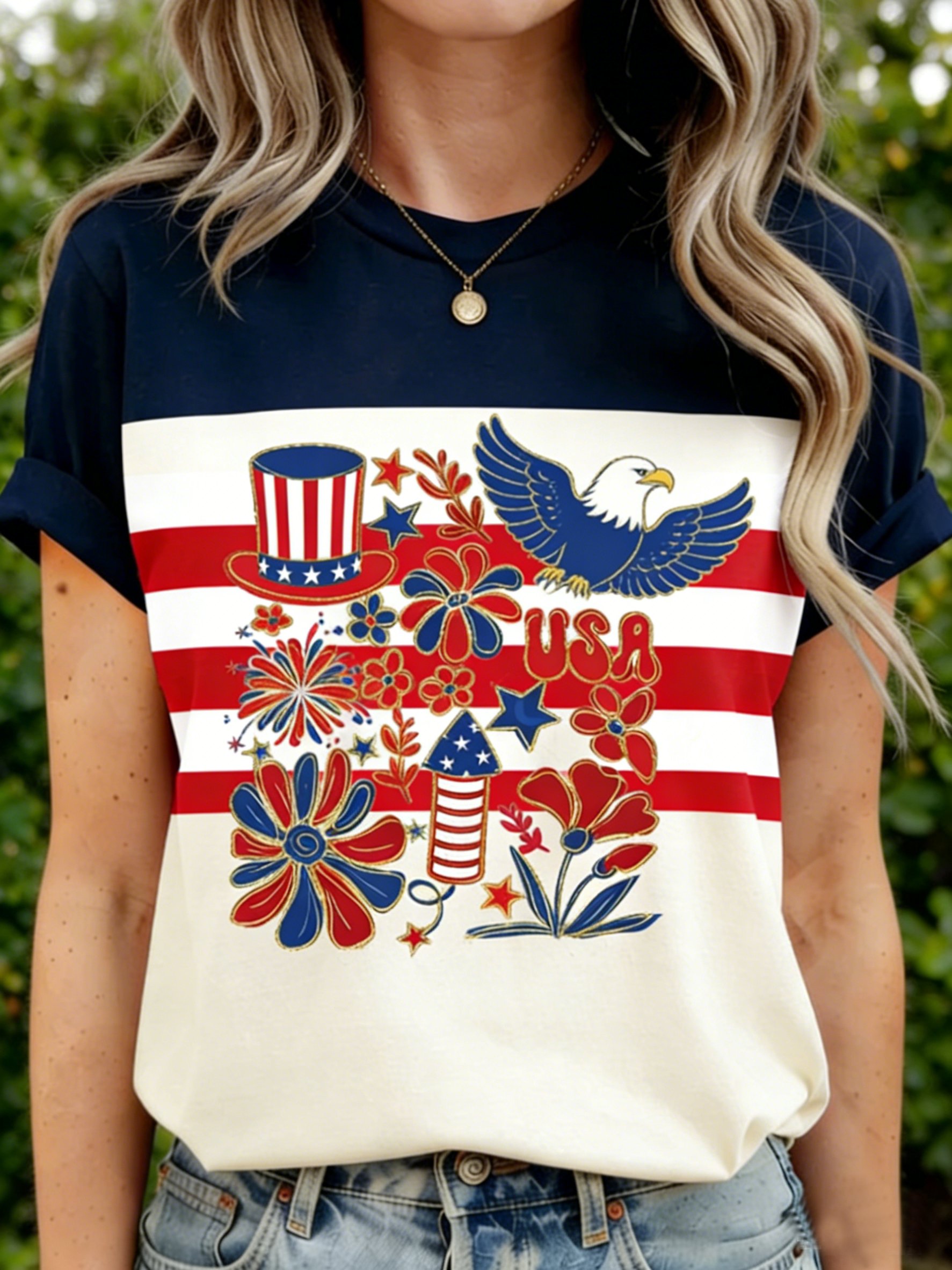 Color Block 3D Printing America Flag 250th Anniversary Eagle Old Glory Crew Neck Short Sleeve Casual T-Shirt