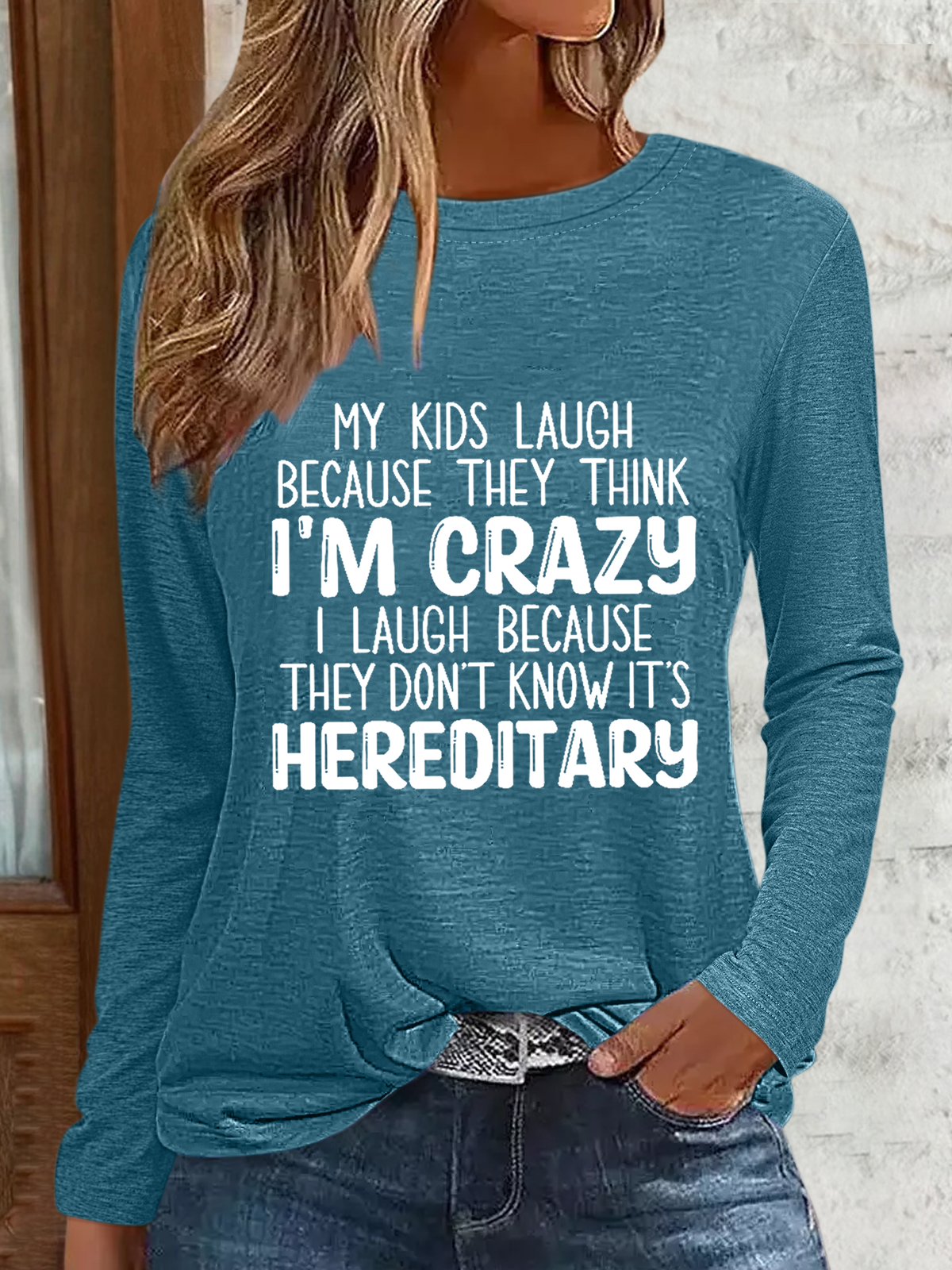 Funny My Kids Laugh Because They Think I'm Crazy I Laugh Because They Don't Know It's Hereditary Crew Neck Simple Shirt