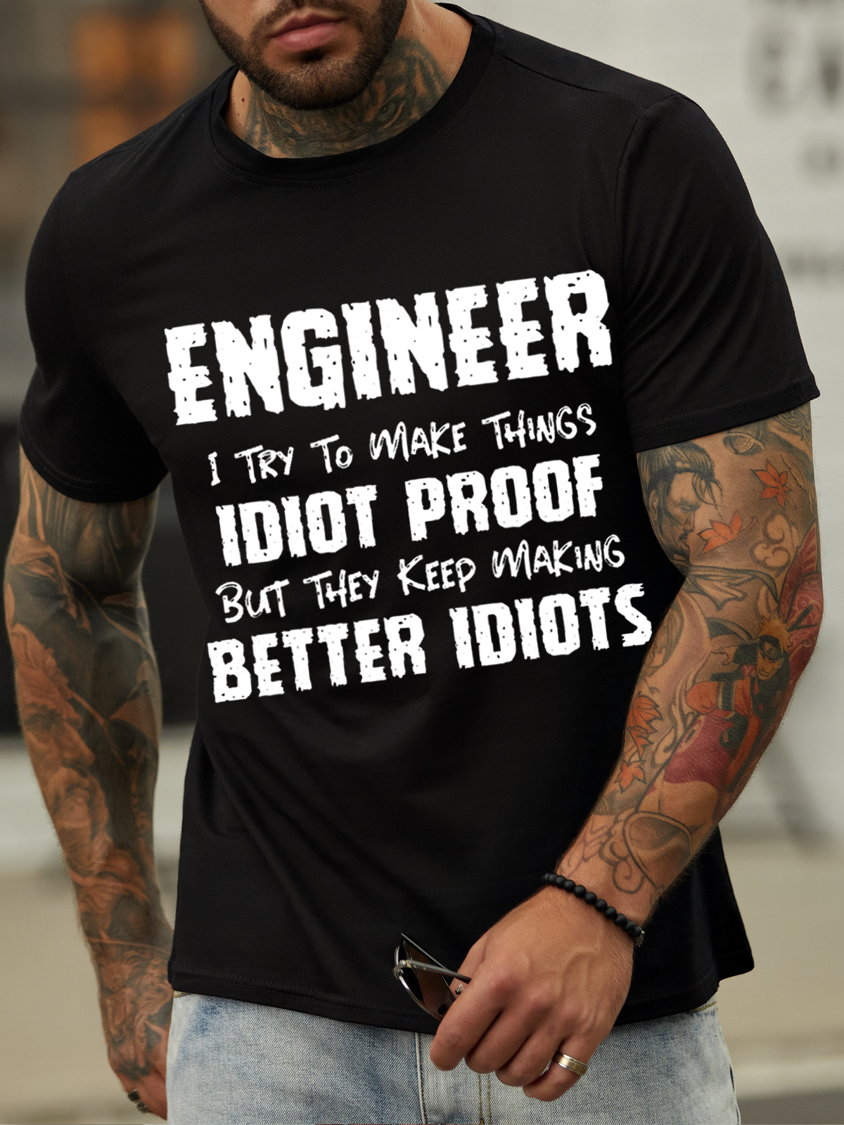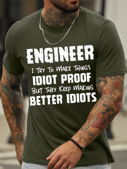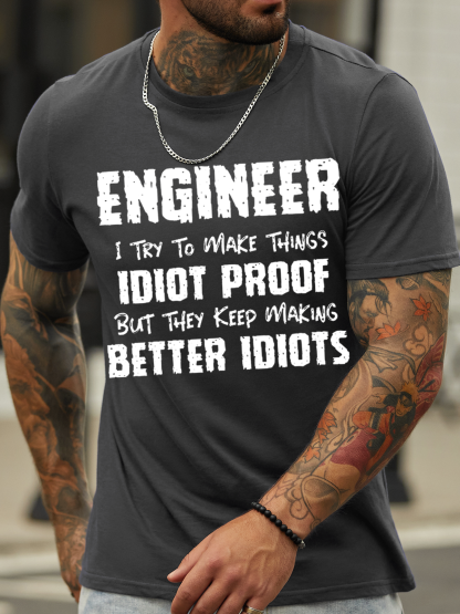 Men's Funny Engineer Cotton Crew Neck Casual T-Shirt