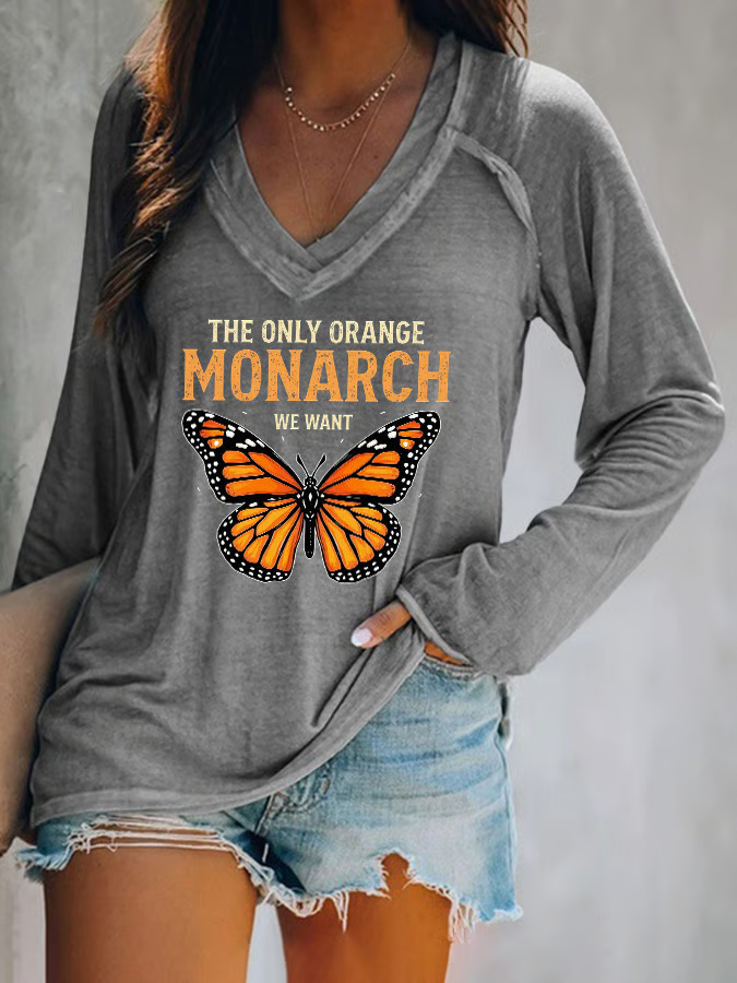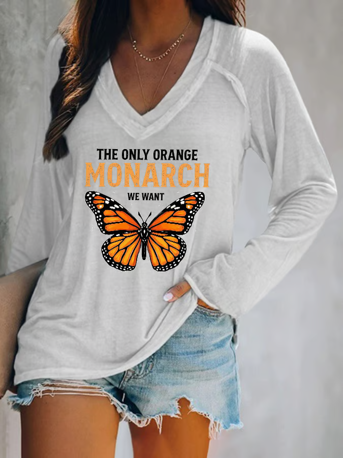 V-neck Retro The Only Orange Monarch We Want Print T-Shirt