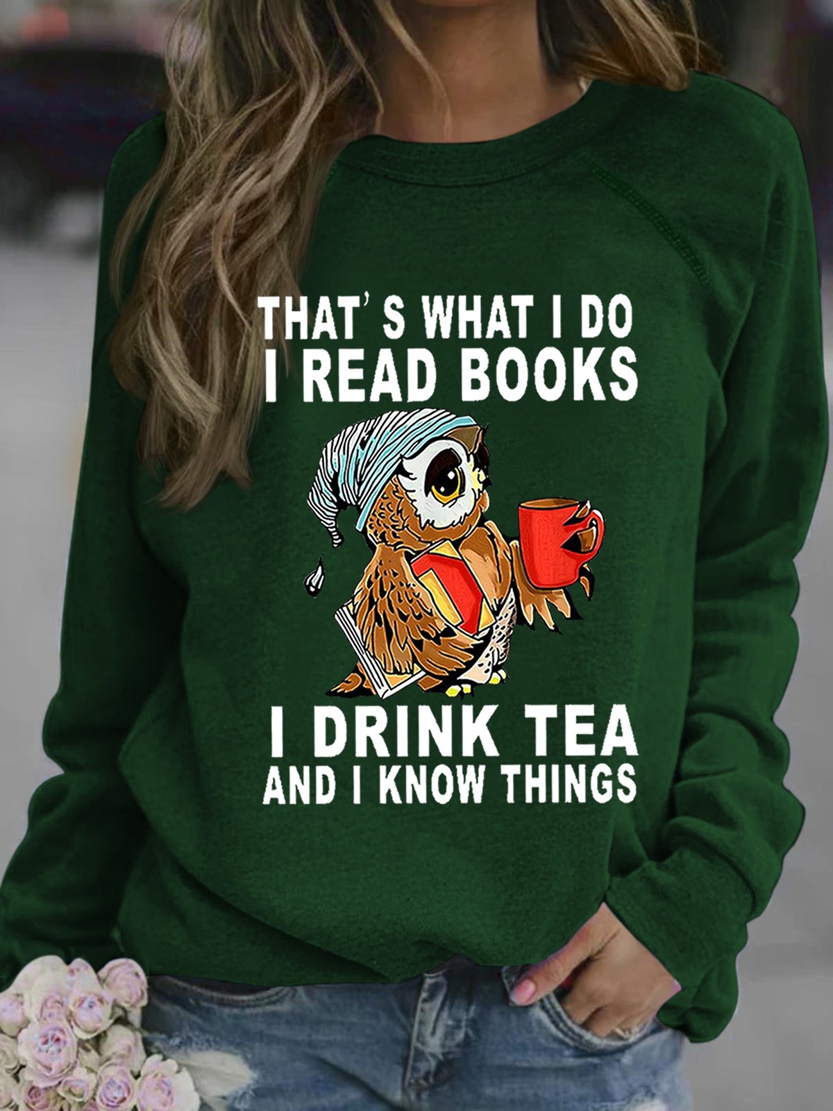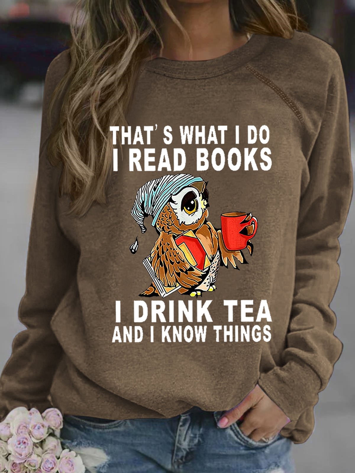Women Owl That’s What I Do I Read Books I Drink Tea And I Know Things Crew Neck Loose Sweatshirt