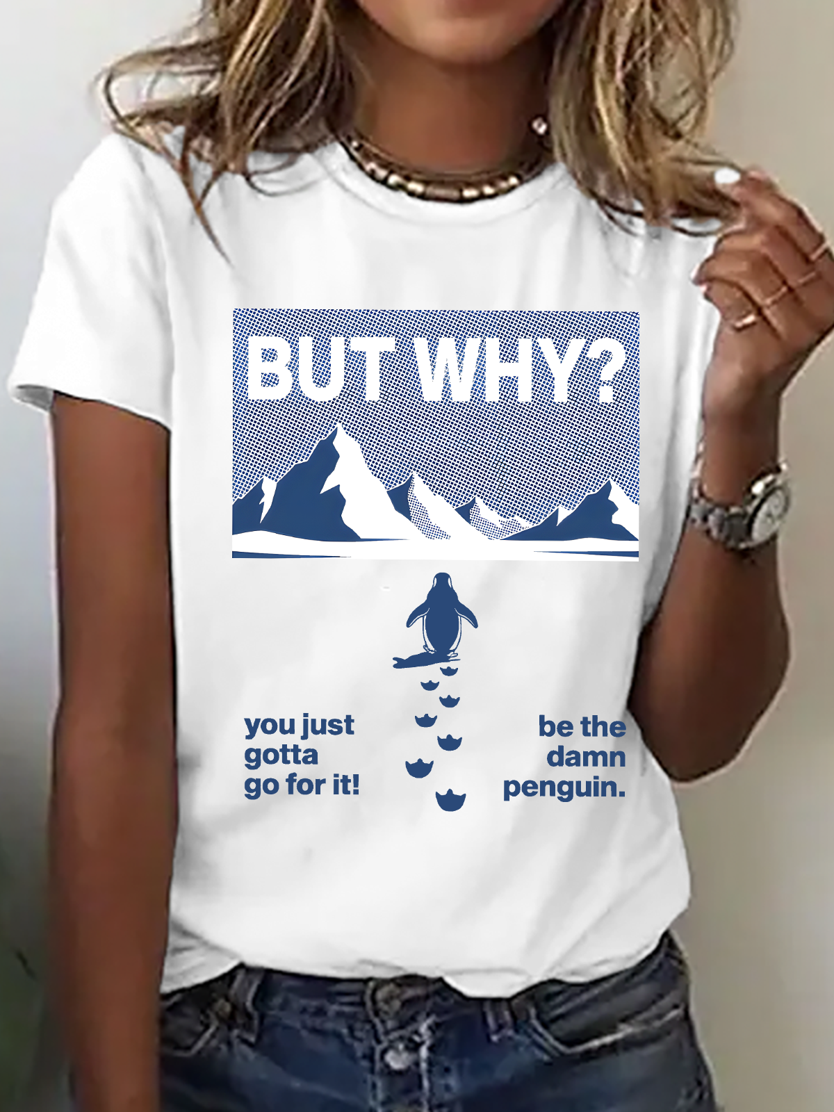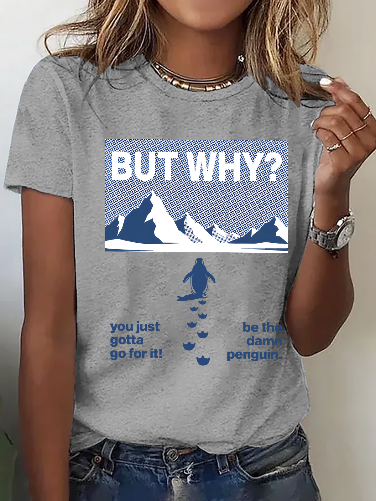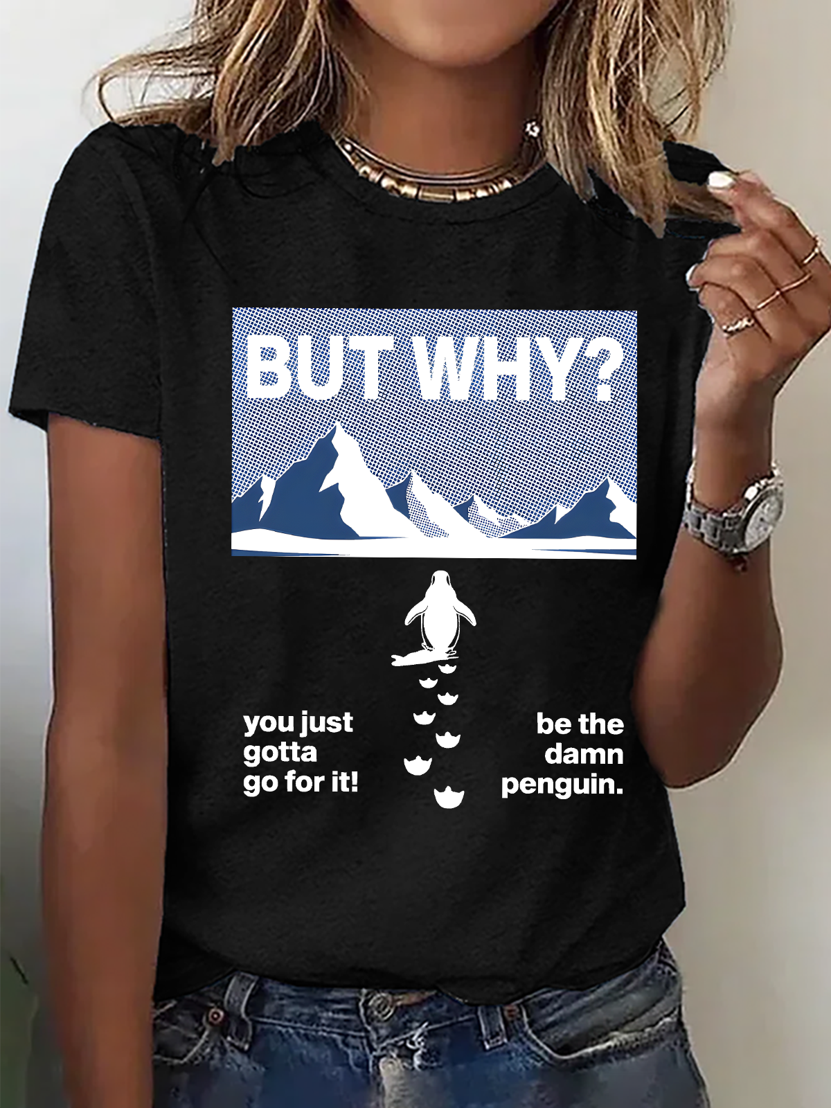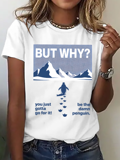 Women's But Why Penguin Graphic short-sleeved T-shirt