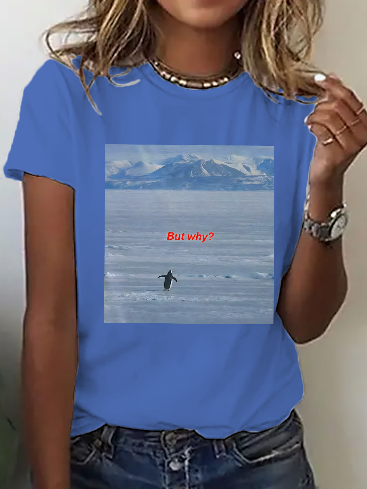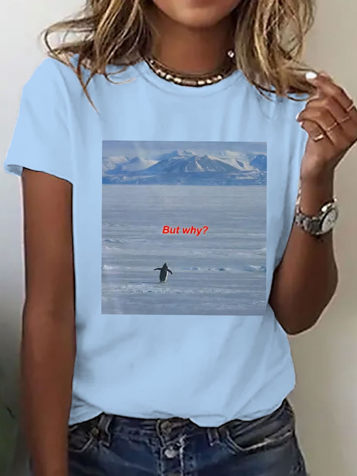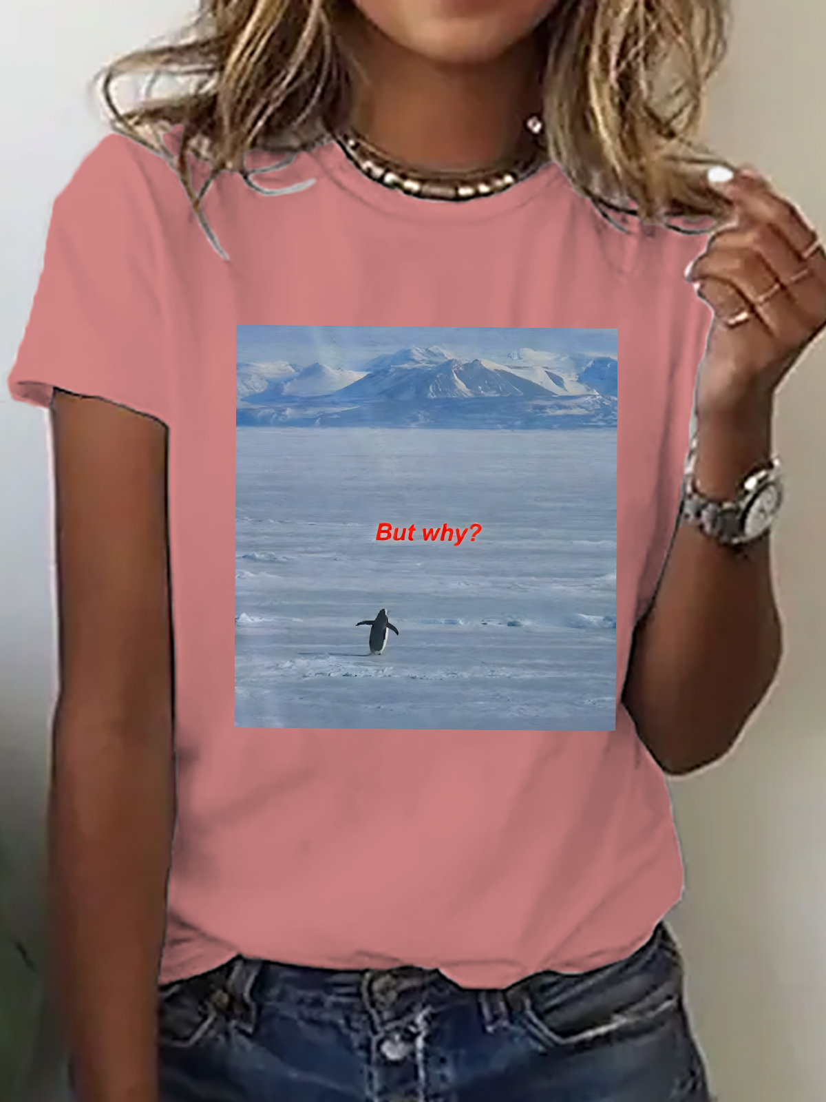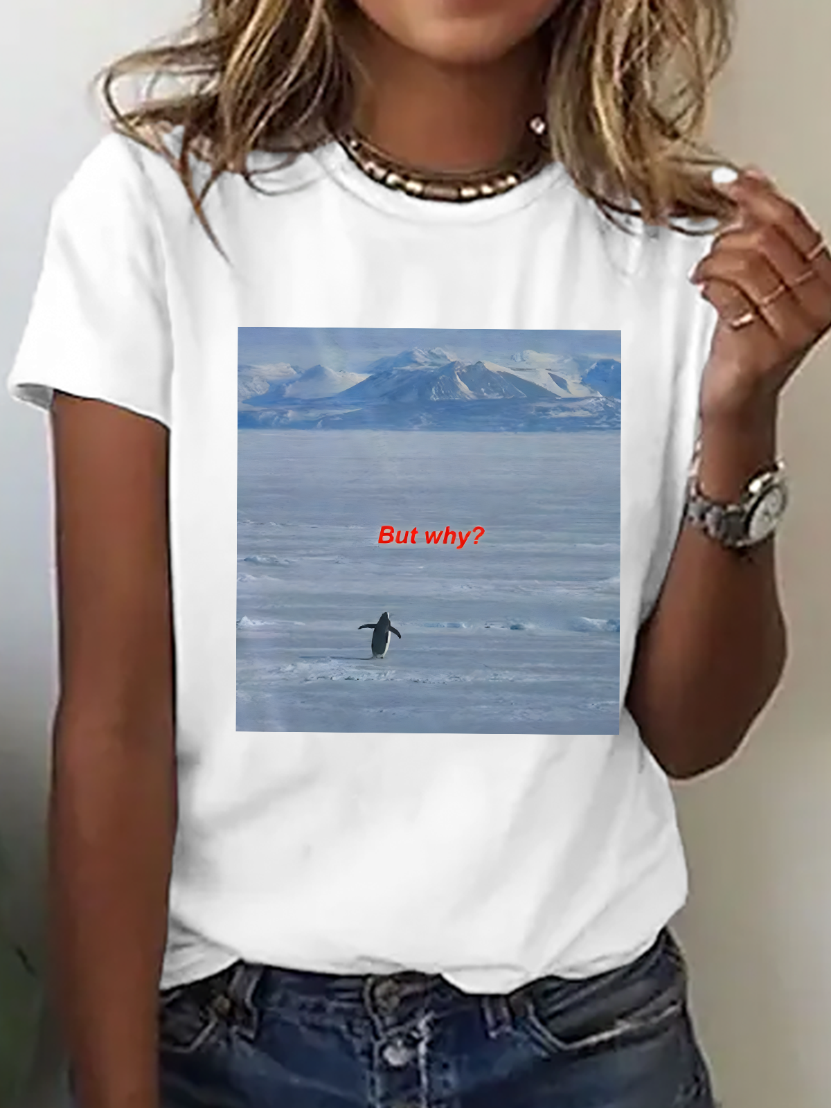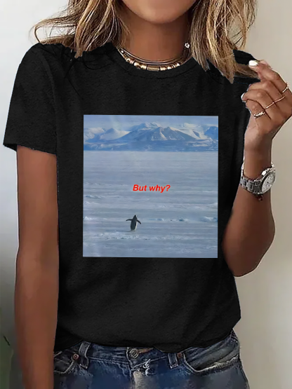 Women's But Why Penguin Graphic short-sleeved T-shirt