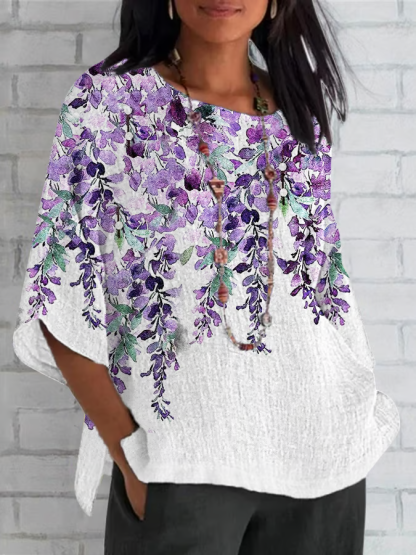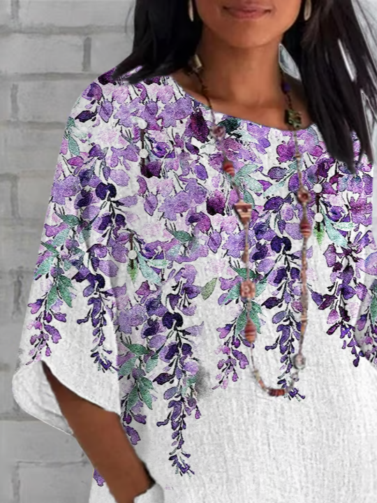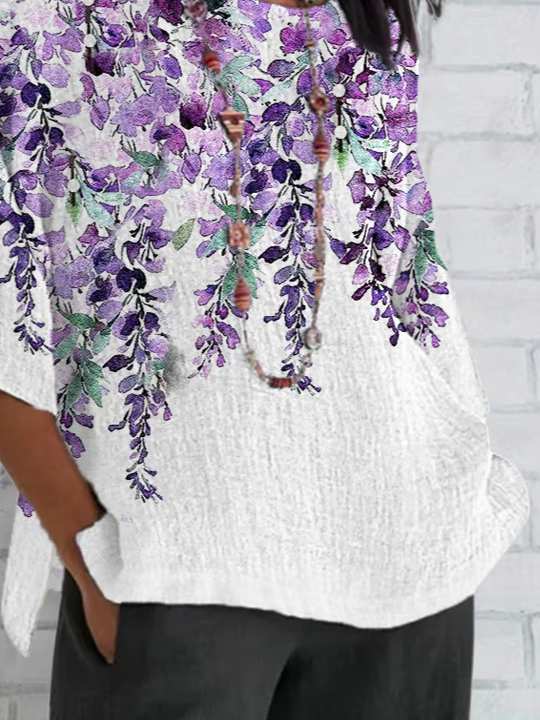 Women's Half Sleeve T-shirt Summer White Floral Crew Neck Daily Going Out Casual Top