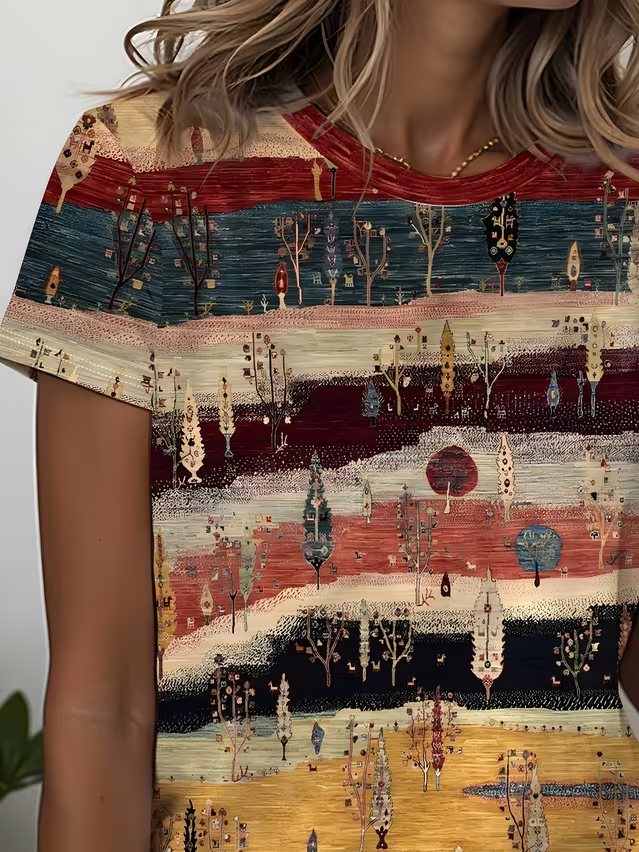 Women's Short Sleeve T-shirt Summer As Picture Ethnic Printing Jersey Crew Neck Daily Going Out Casual Top