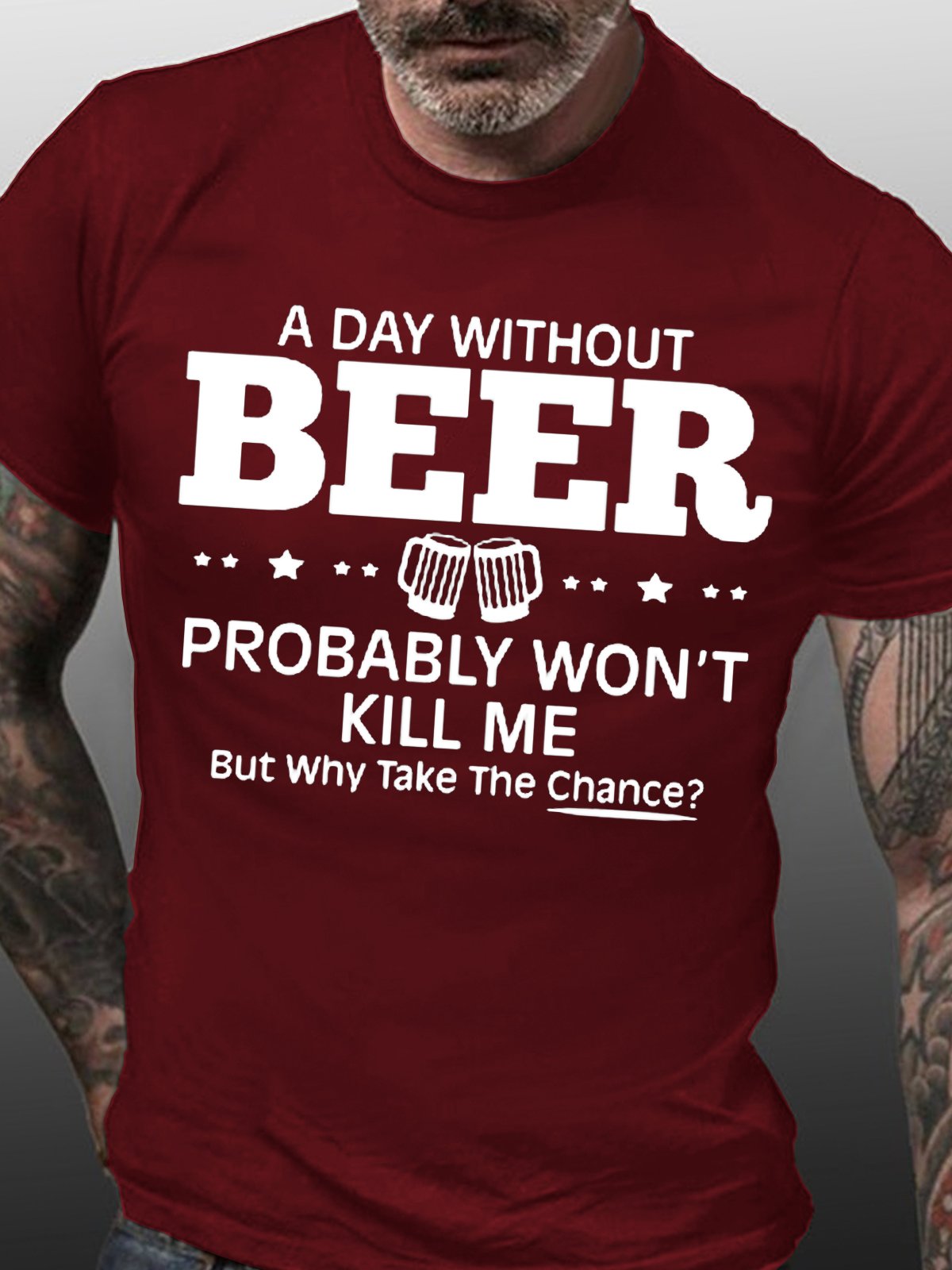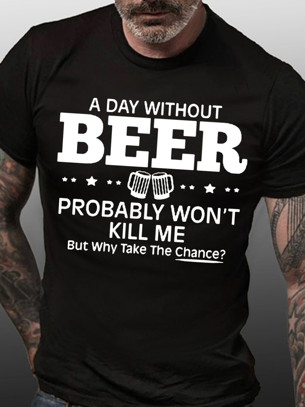 Mens A Day Without Beer Probably Won't Kill Me Short Sleeve Casual T-Shirt