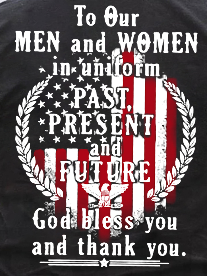American Flag God Bless You And Thank You Cotton Vintage Crew Neck T-Shirt