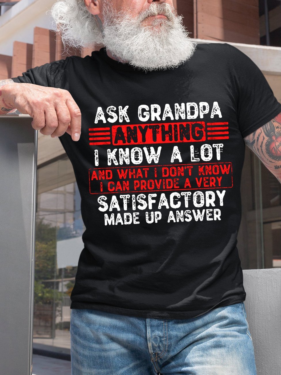 Ask Grandpa Anything Funny Crew Neck T-shirt