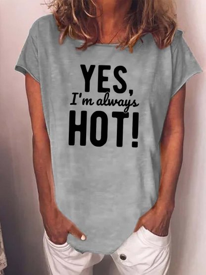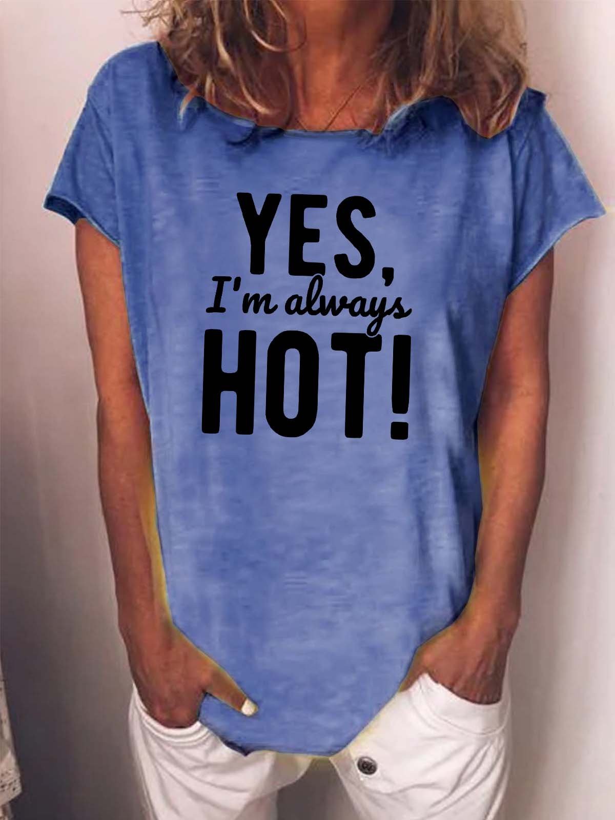 Women Yes I’m Always Hot Cotton-Blend Loose Casual T-Shirt