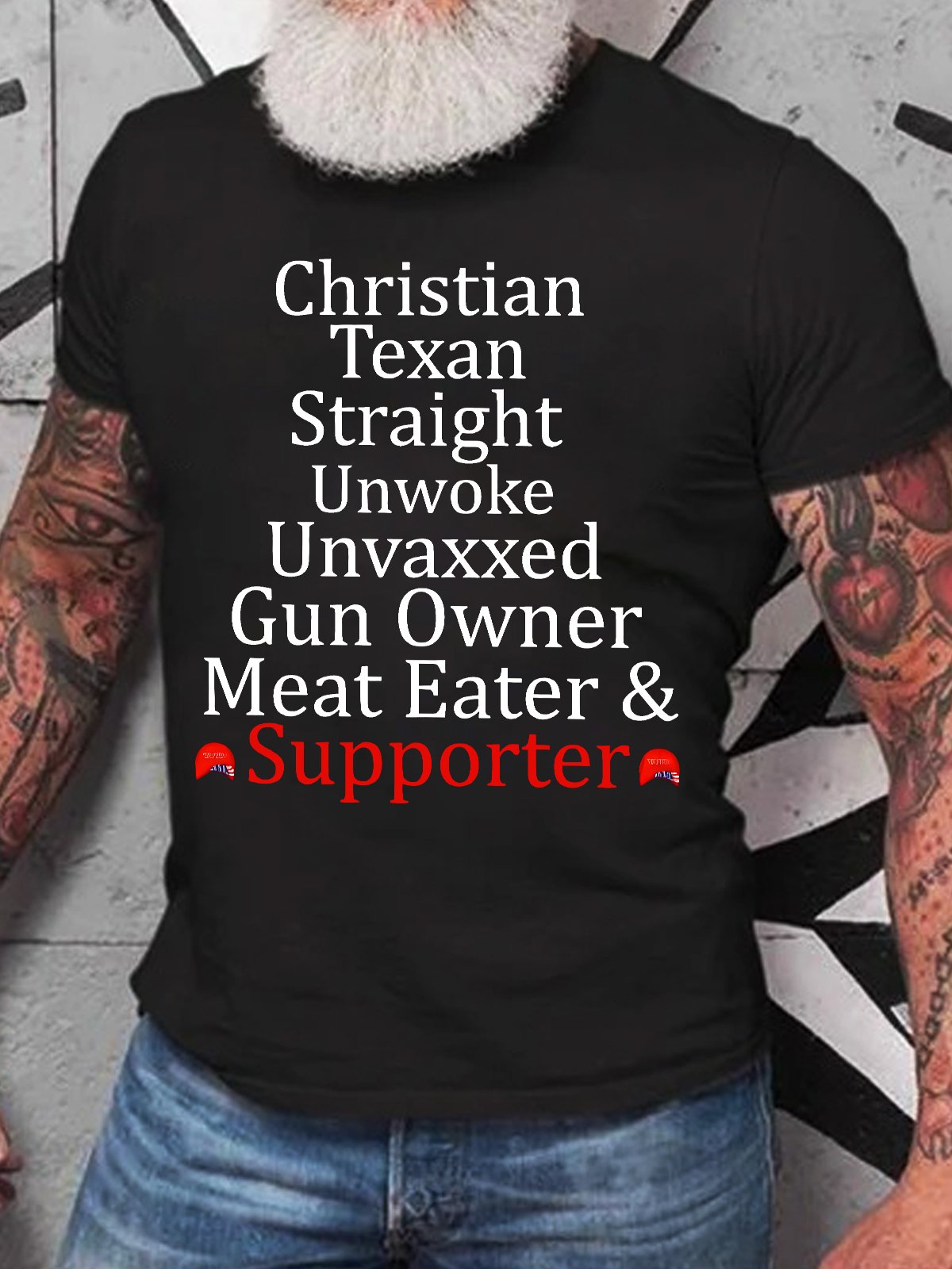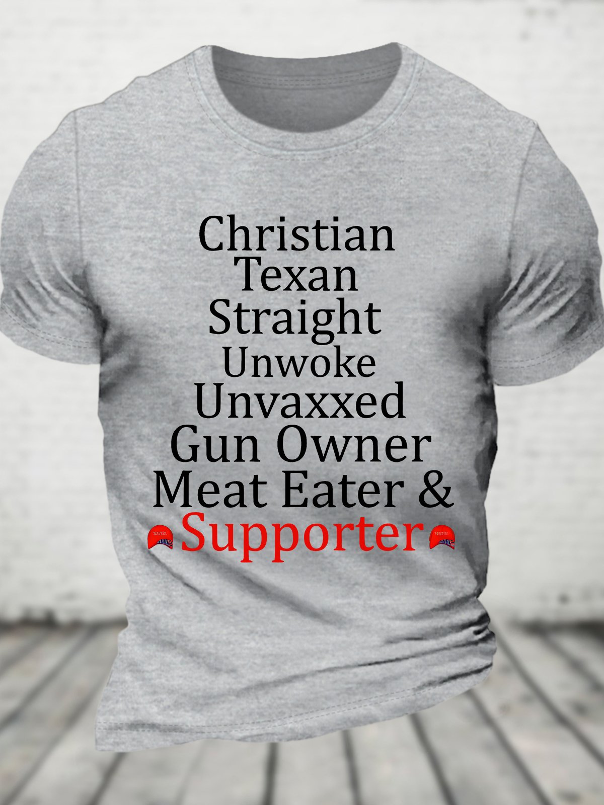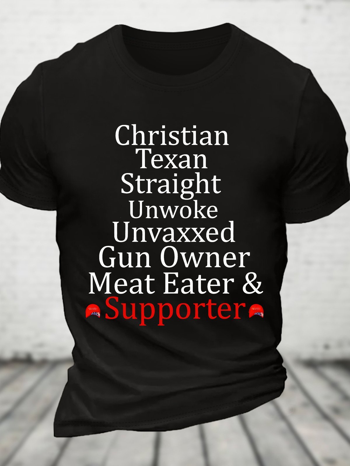 Christian Texan Straight Unwoke Unvaxxed Gun Owner Meat Eater & Supporter Cotton T-shirt
