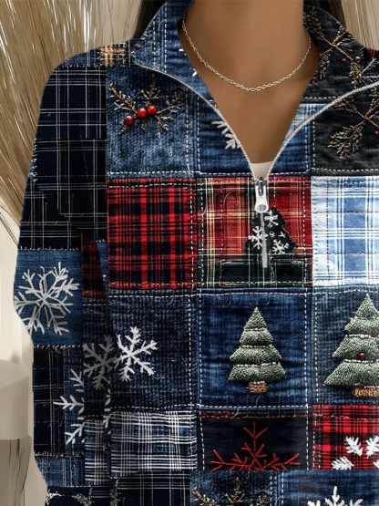 Christmas Tree Zipper Regular Fit Casual Sweatshirt