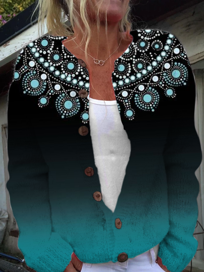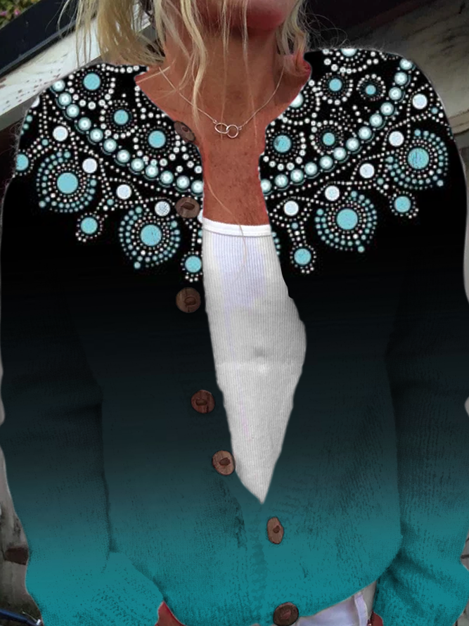 Crew Neck Casual Abstract Graphic Cardigan