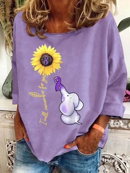 Elephant I Will Remember For You Sunflower Alzheimer Casual Sweatshirt