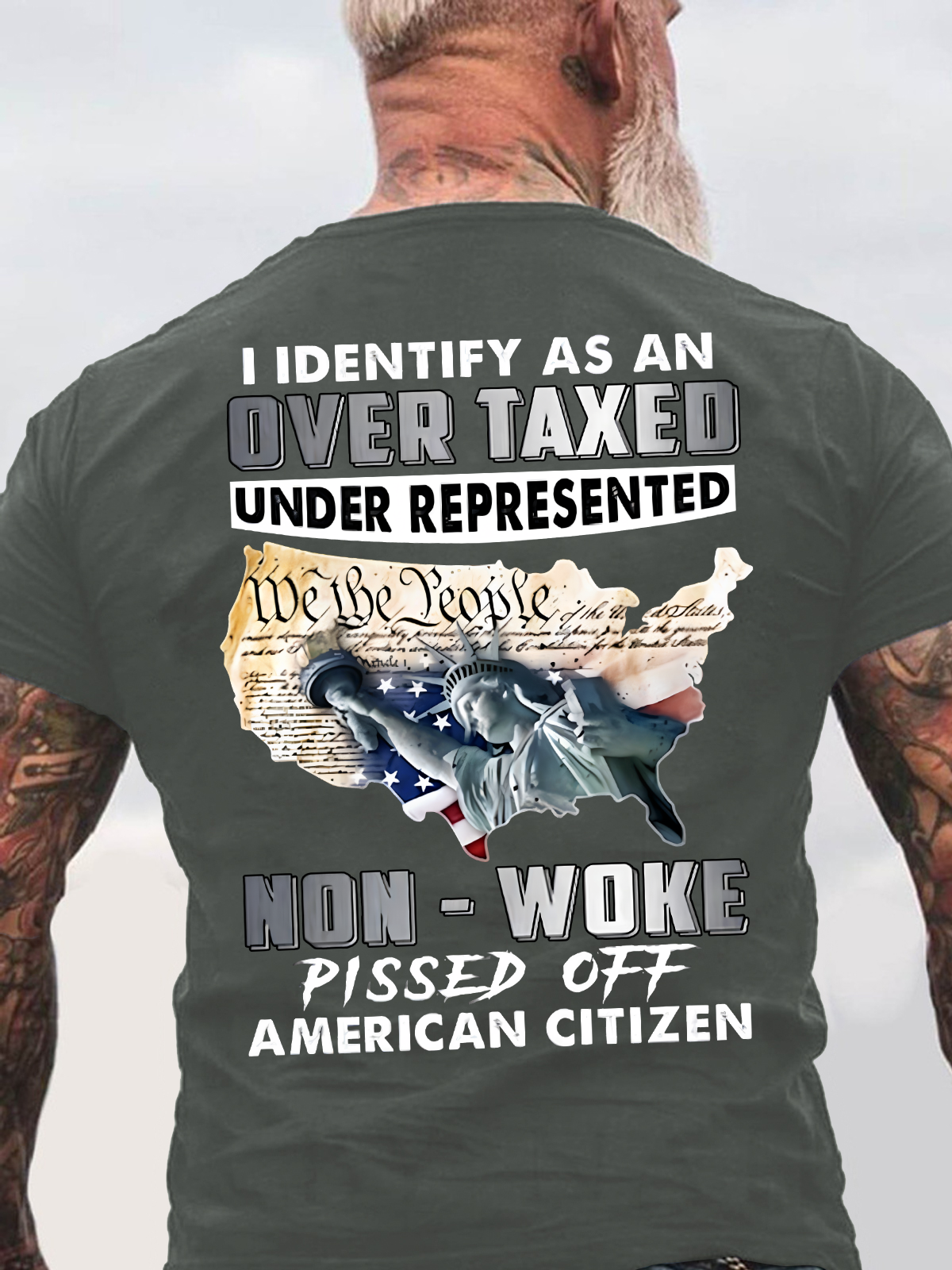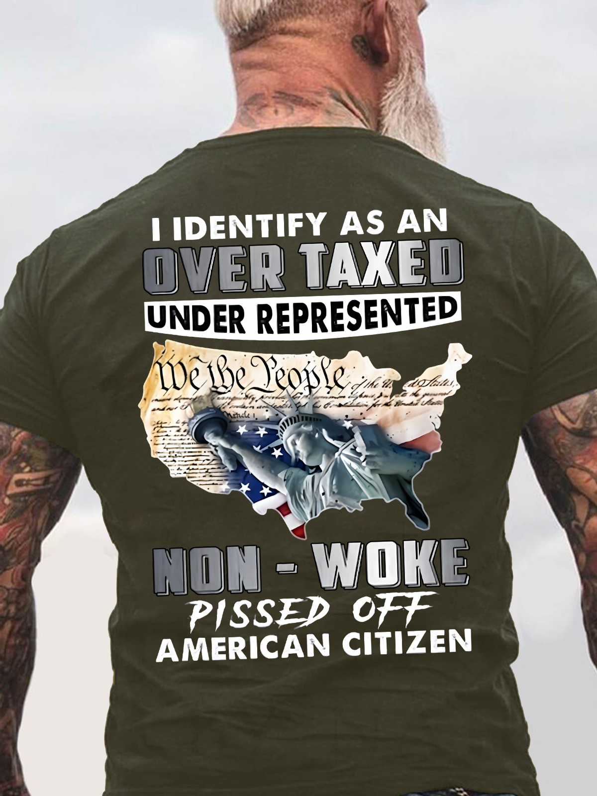 I Identify As An Over Taxed Under Represented Non - Woke Pissed Off American Back Cotton T-Shirt
