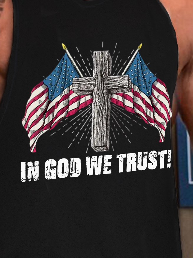 In God We Trust America Flag Men's Loose Crew Neck Tank Top